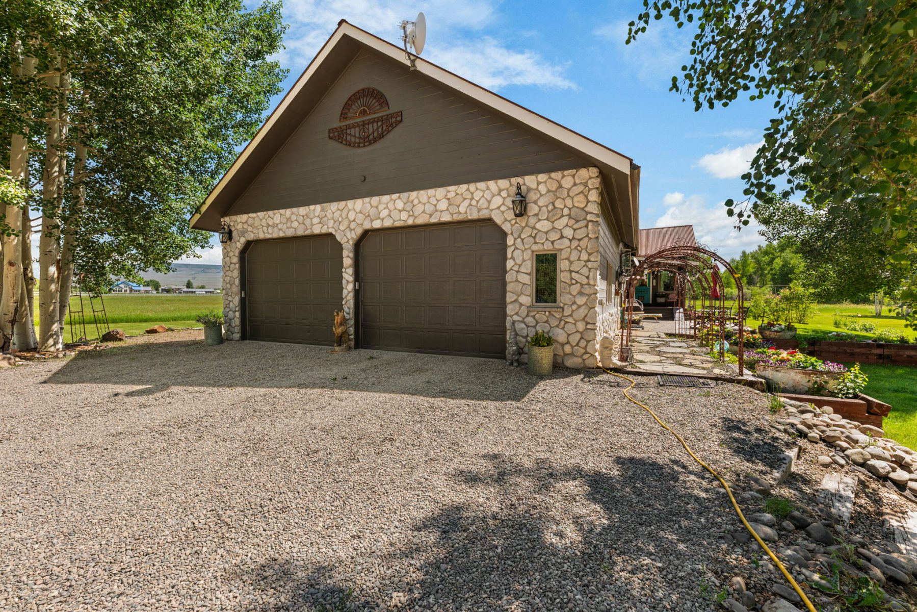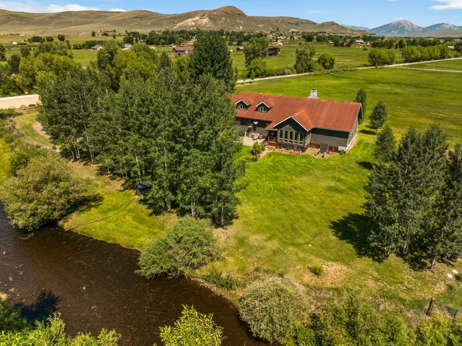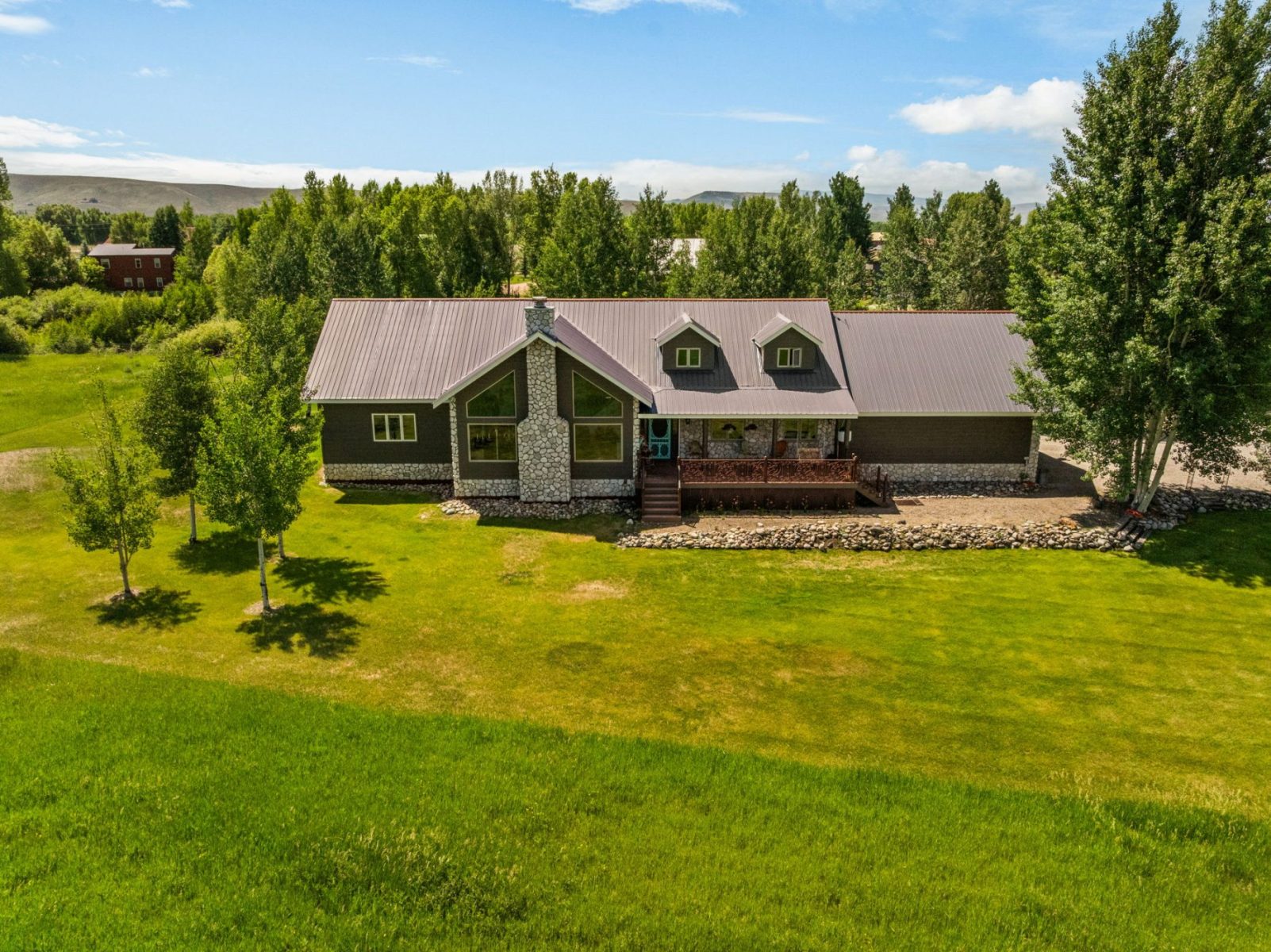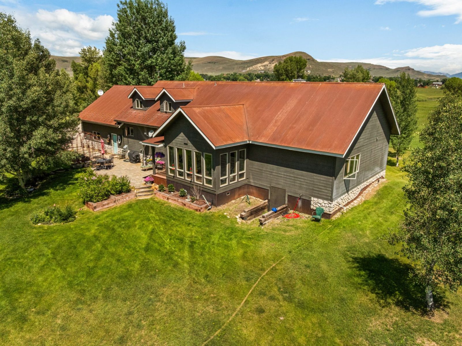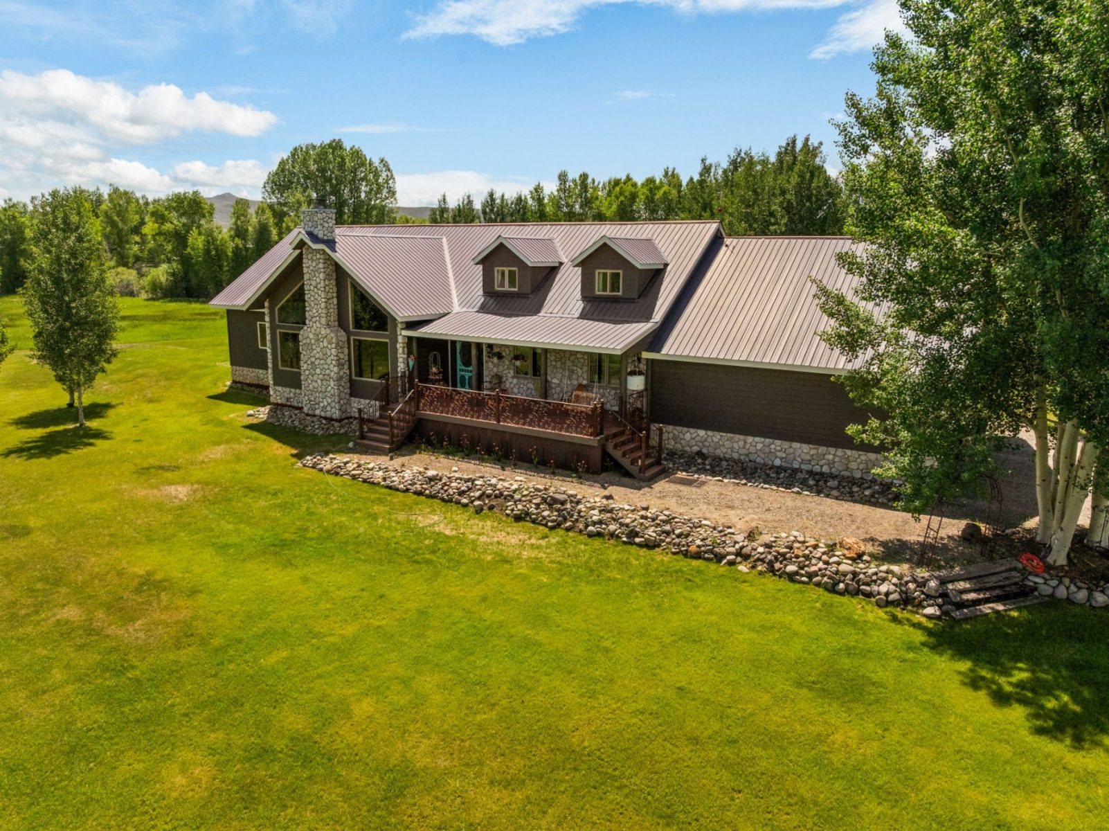 - Additional highlights include: substantial water rights for irrigation, in-floor radiant heating throughout, an oversized, heated two-car garage, two large storage containers, expansive flagstone patio, and no HOA restrictions