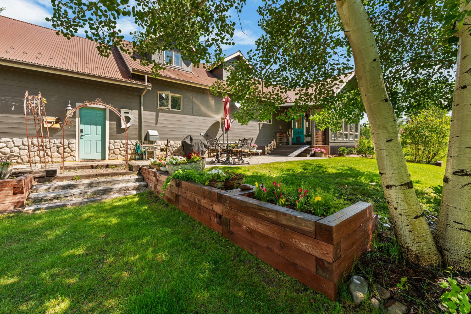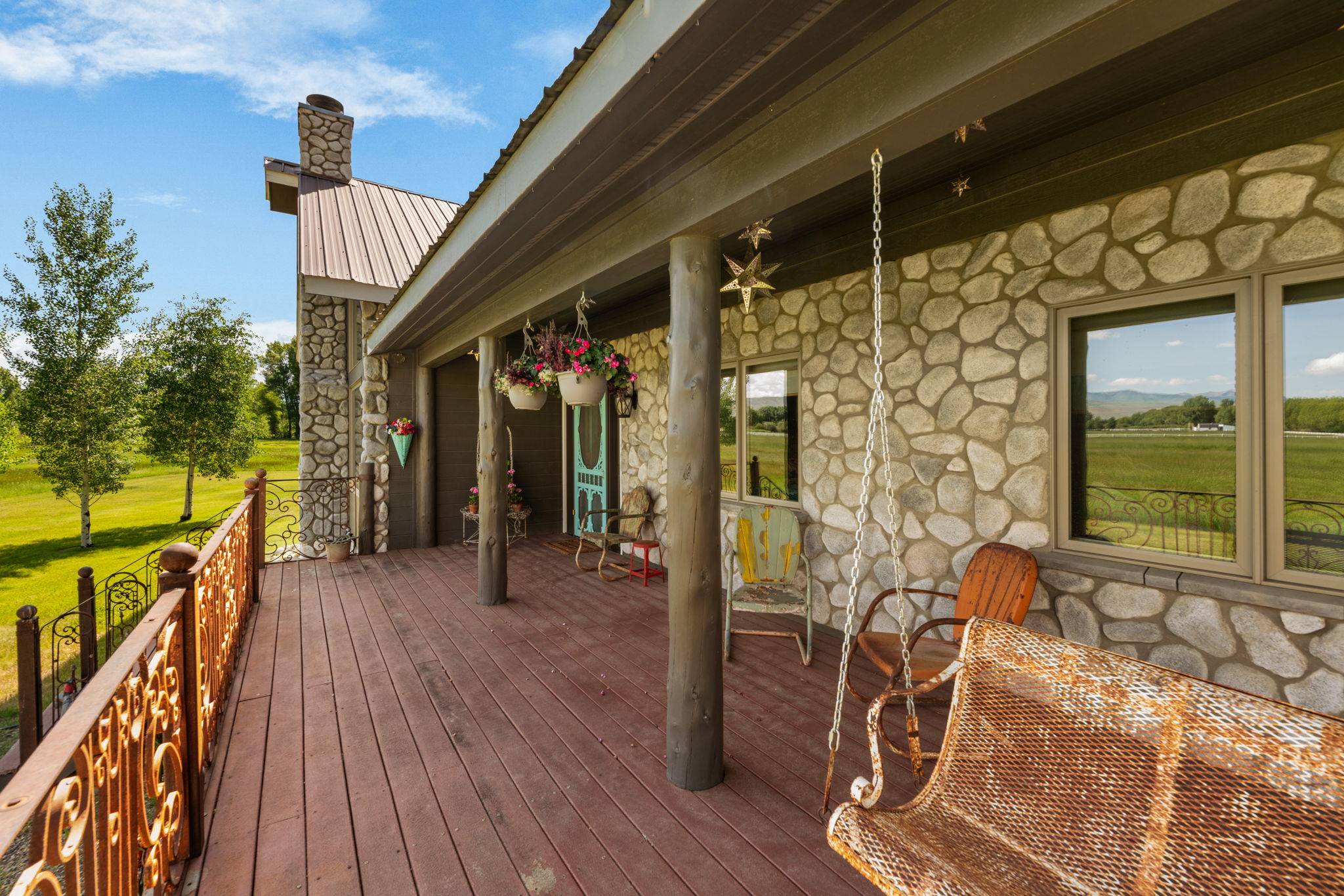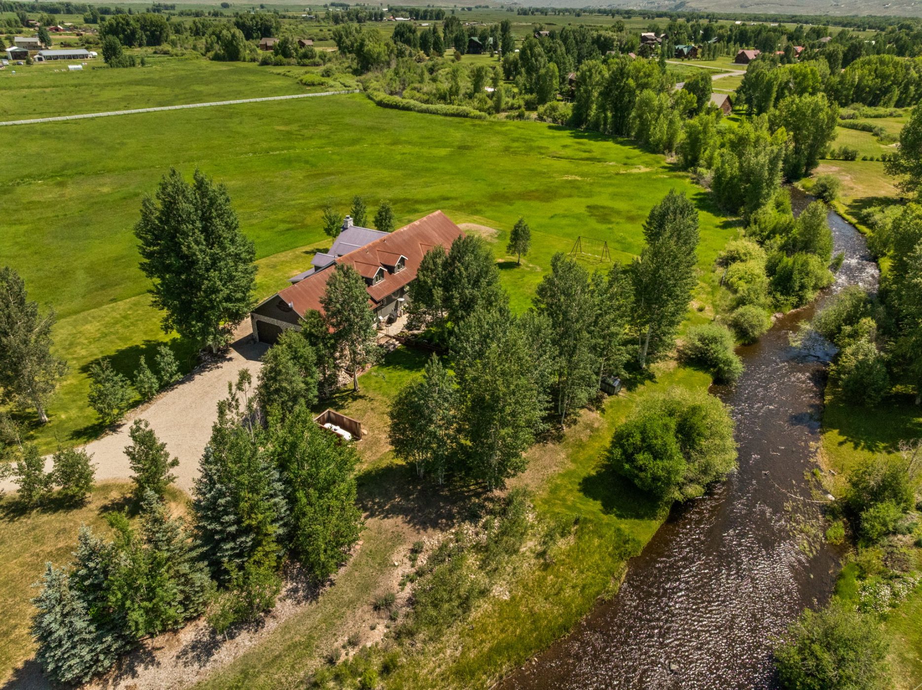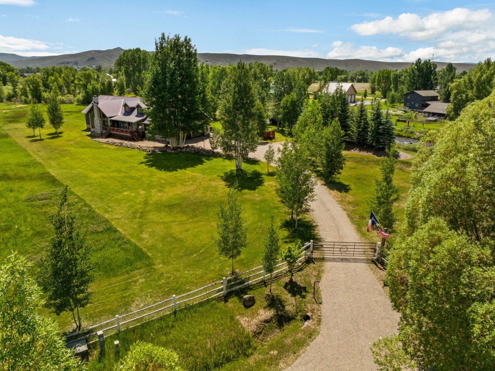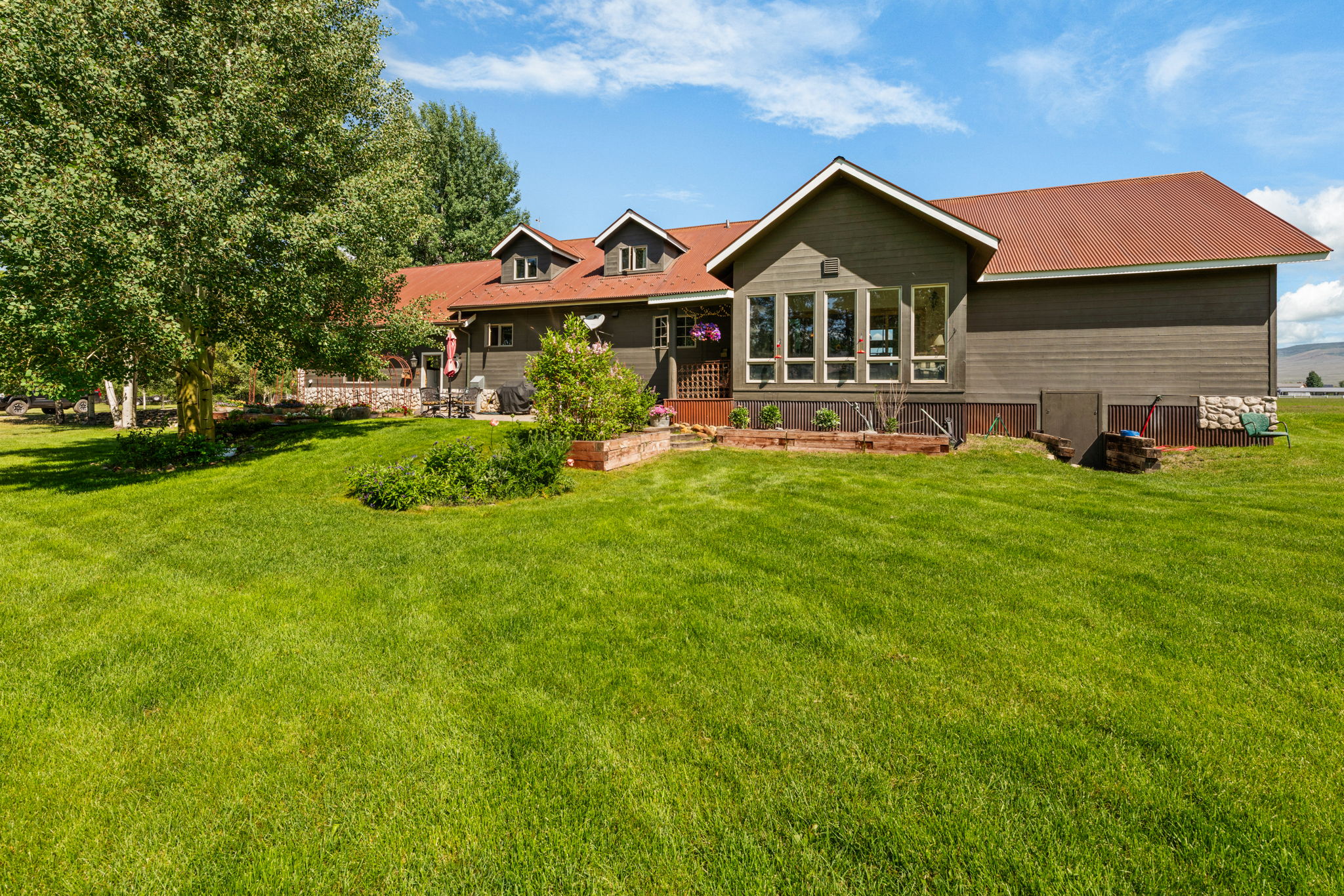 - Additional highlights include: substantial water rights for irrigation, in-floor radiant heating throughout, an oversized, heated two-car garage, two large storage containers, expansive flagstone patio, and no HOA restrictions