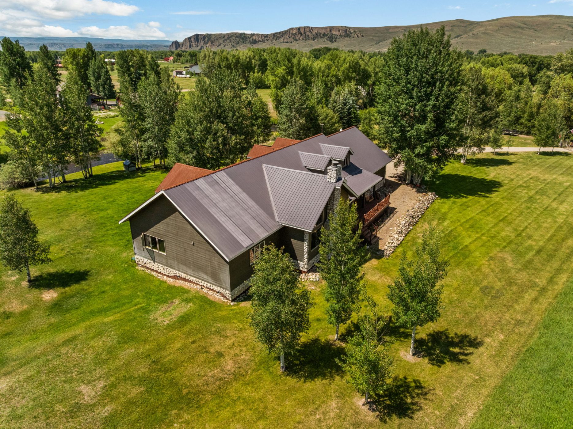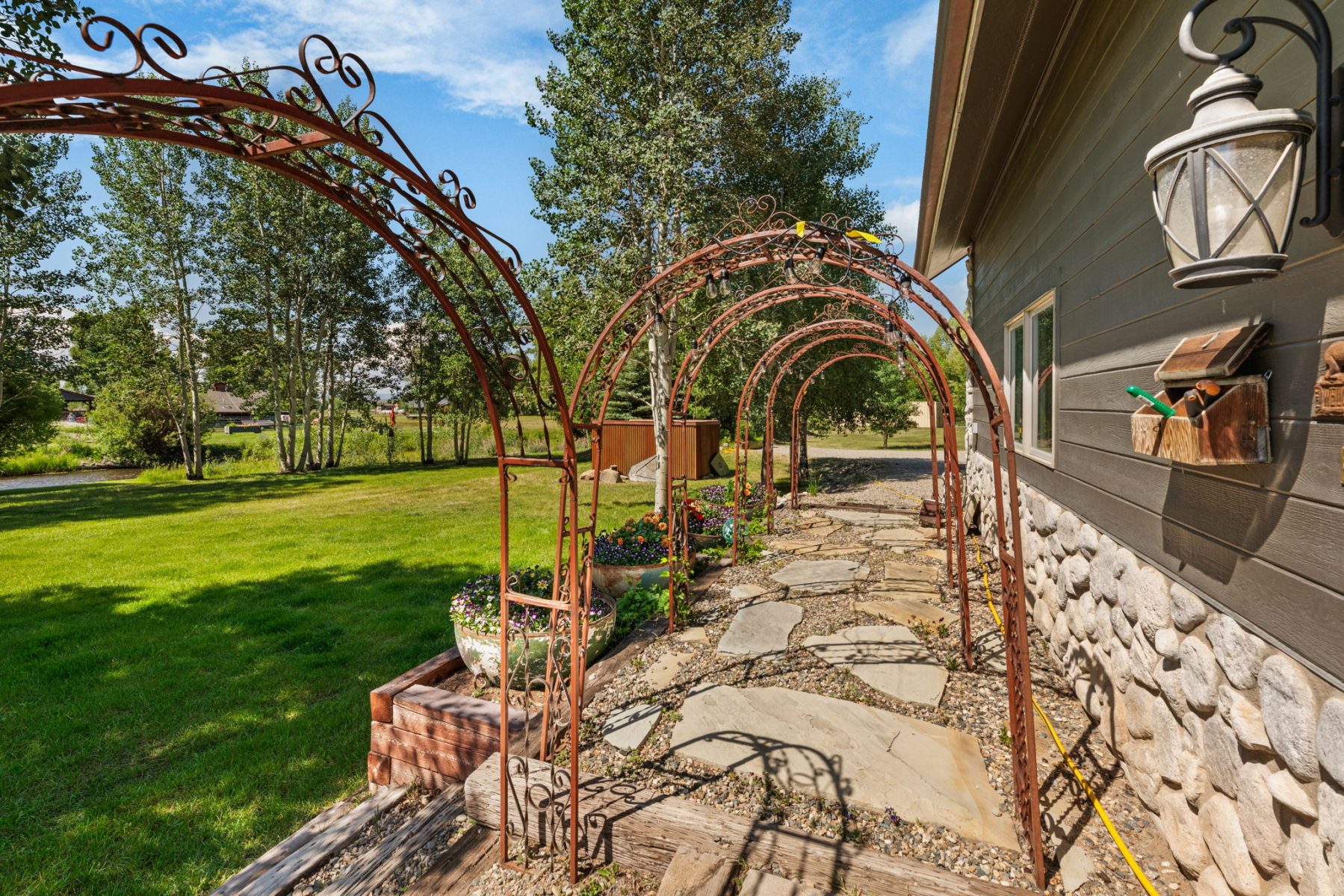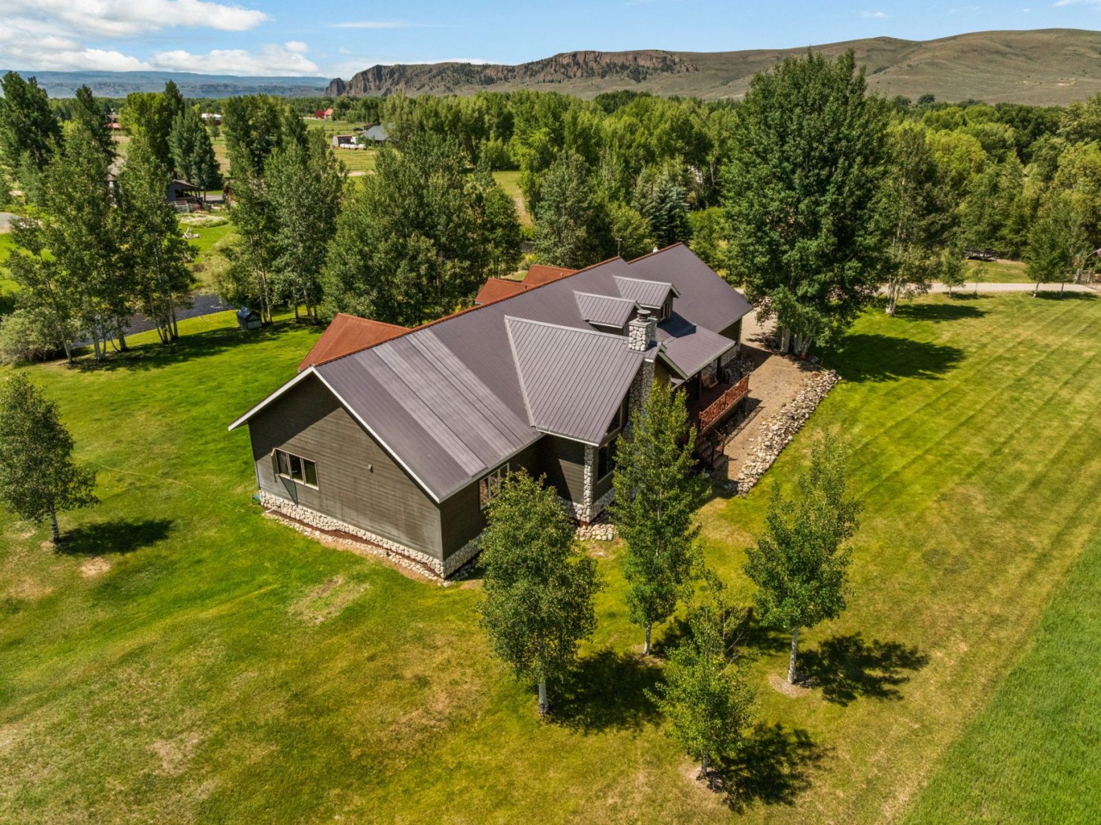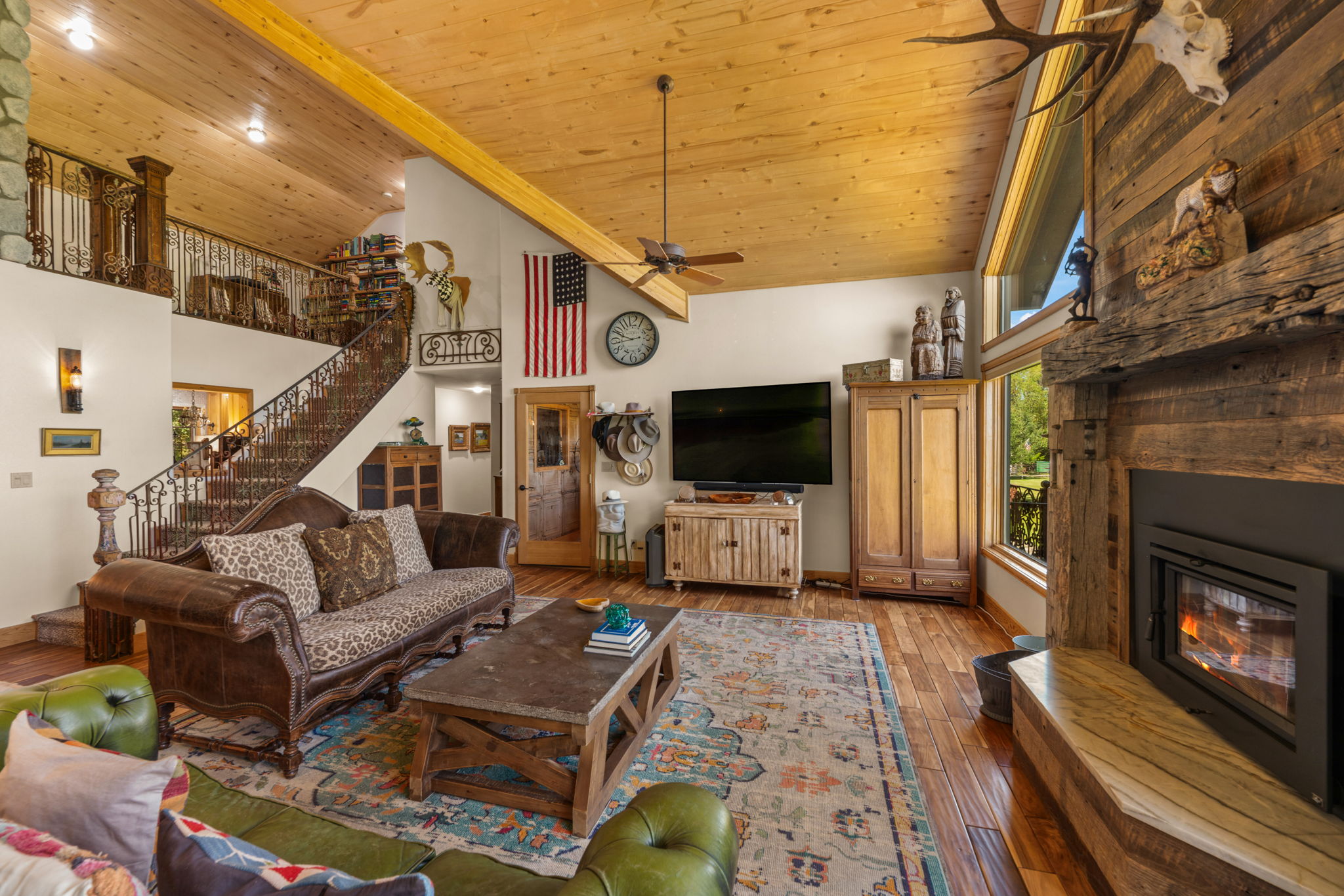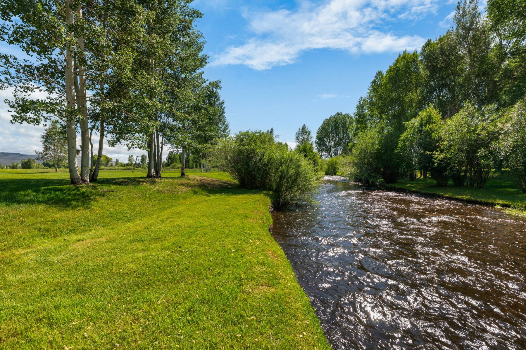 - Additional highlights include: substantial water rights for irrigation, in-floor radiant heating throughout, an oversized, heated two-car garage, two large storage containers, expansive flagstone patio, and no HOA restrictions