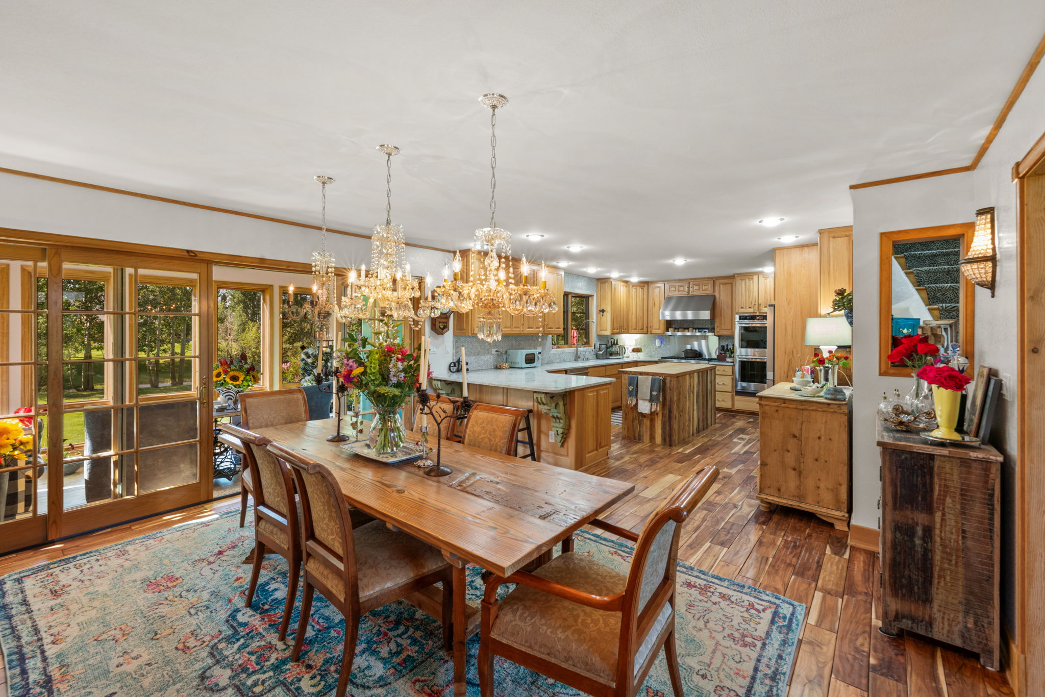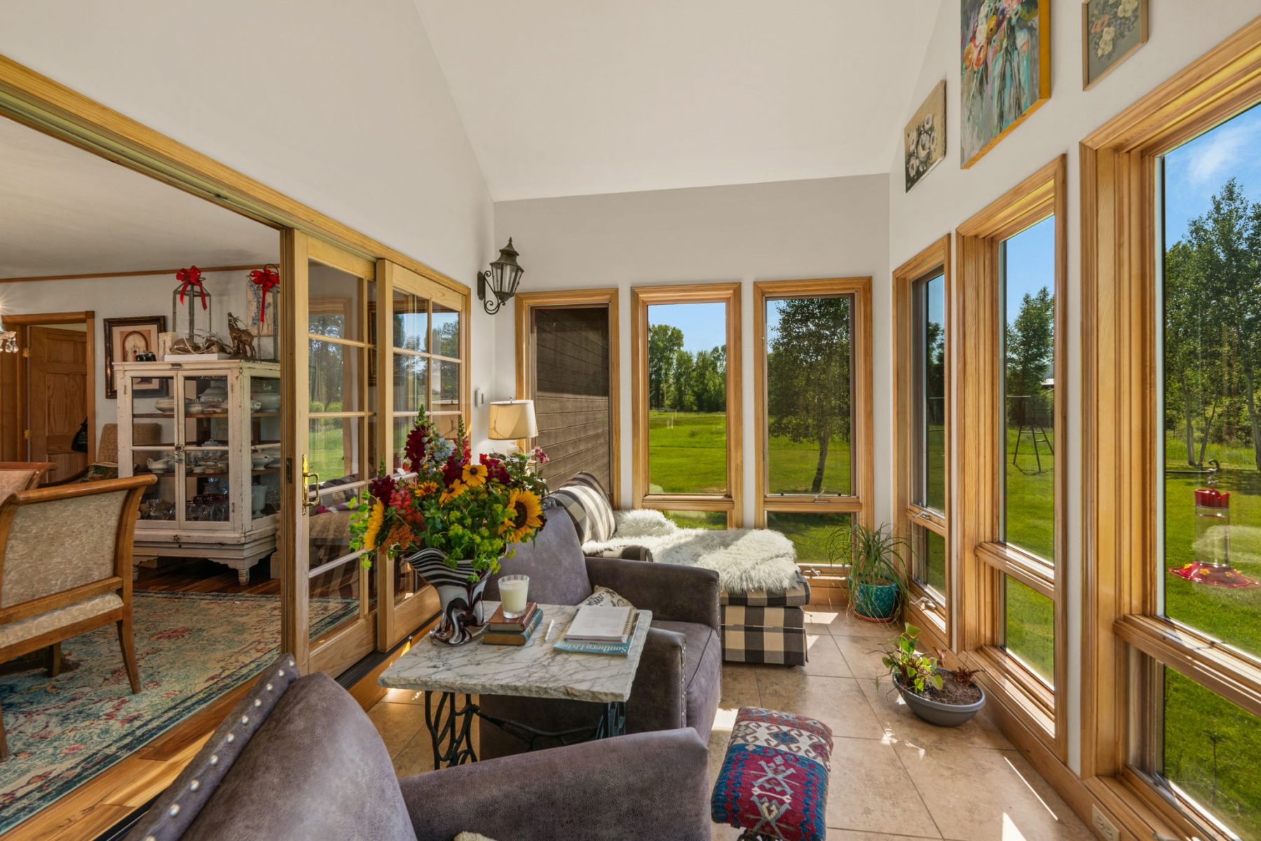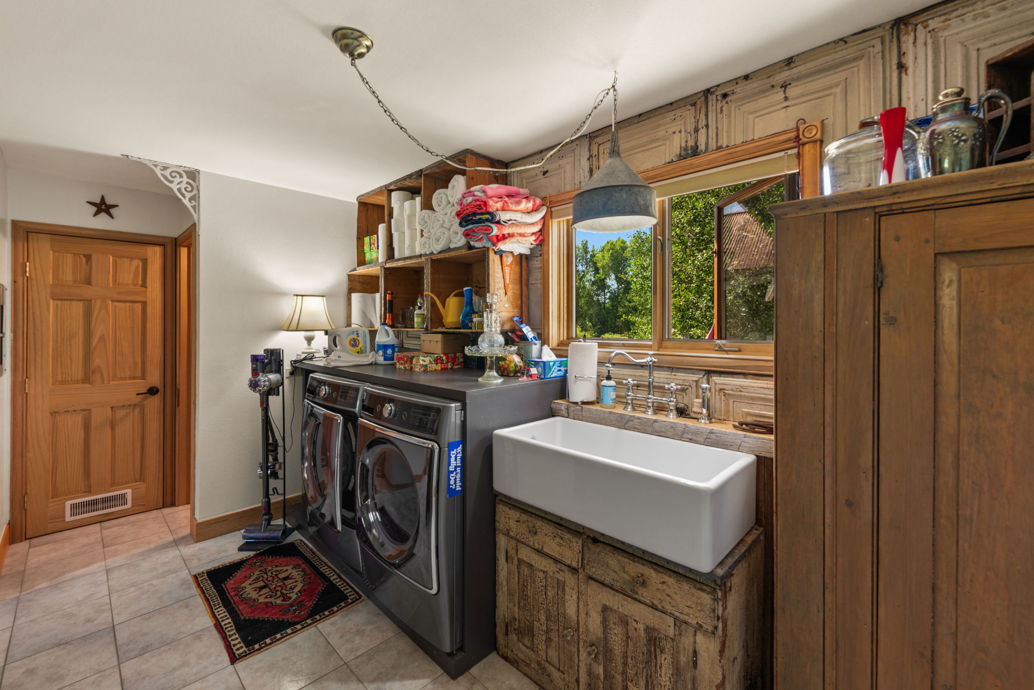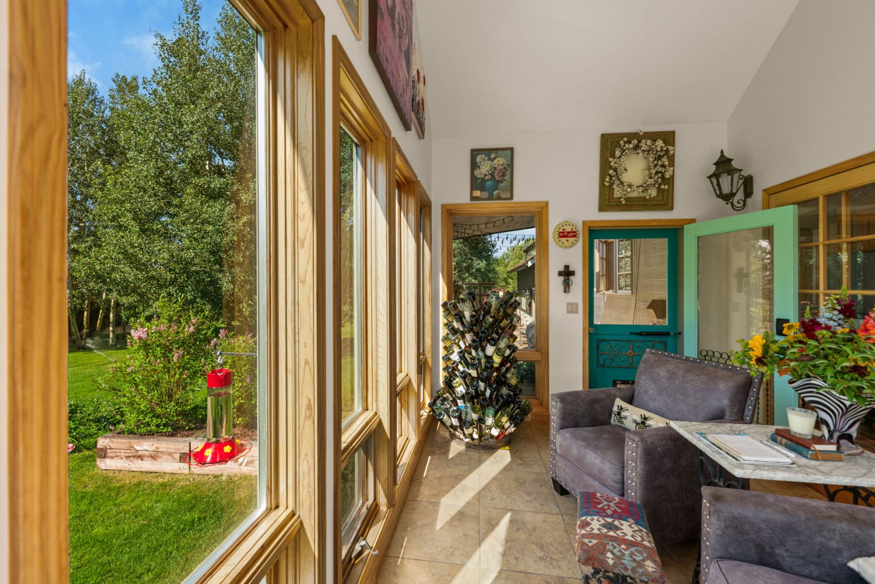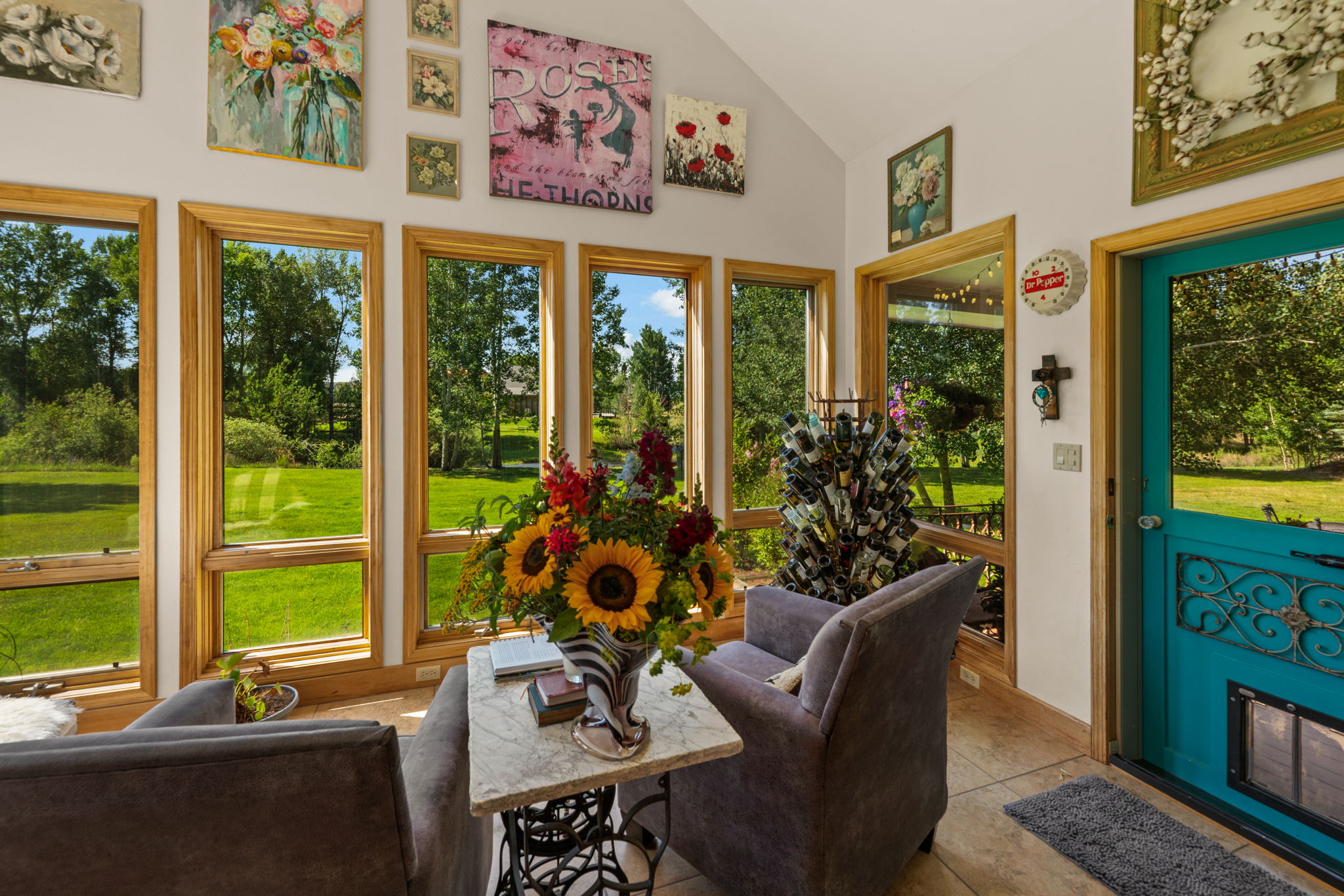 - Additional highlights include: substantial water rights for irrigation, in-floor radiant heating throughout, an oversized, heated two-car garage, two large storage containers, expansive flagstone patio, and no HOA restrictions