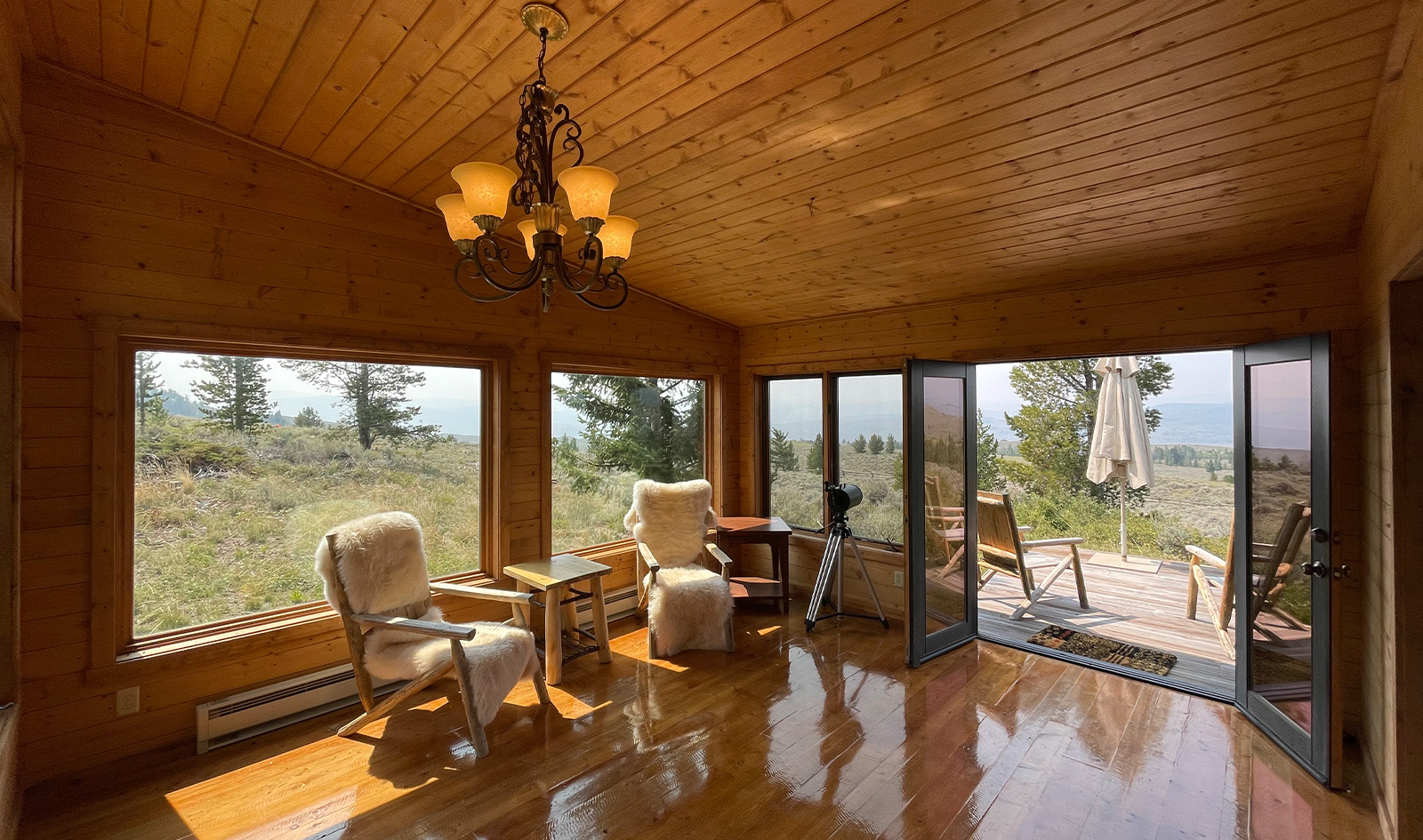 Located an hour and thirty minutes drive from Jackson Hole Airport and 14 miles west of the historic town of Dubois,WY lies the Washakie Wilderness Ranch. This mountain retreat encompasses 160 deeded acres of property and borders(adjacent Fed land) the infamous Shoshone National Forest. The homestead is perched upon a plateau visioning unparalleled sunset views mixed with a diverse landscape and a plethora of wildlife. Depending on the time of year, big game such as; antelope, mule deer, moose, bear, and elk may be mixed within the sagebrush, timber, or the willows of Bench Creek. Golden eagles and other various raptors constantly engage the thermals above. Nutrient-rich soil sparks an incredible bloom of wildflowers every summer that engage the senses. The Washakie Wilderness Ranch in short, is a nature lovers paradise.