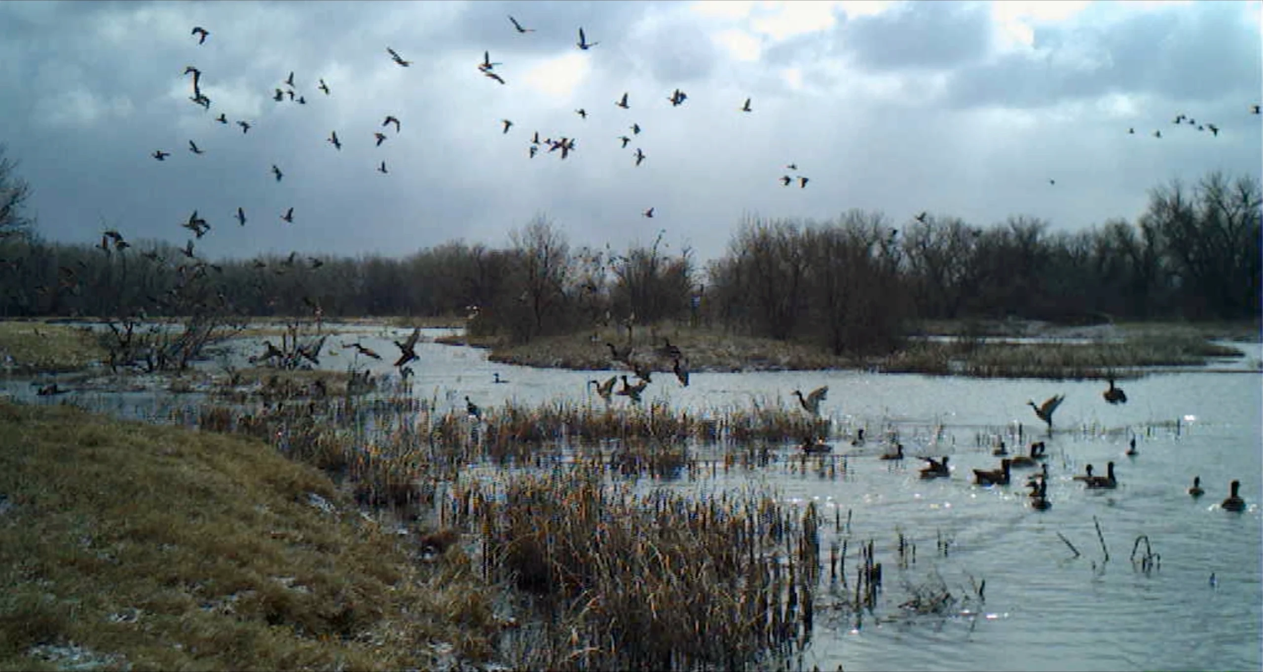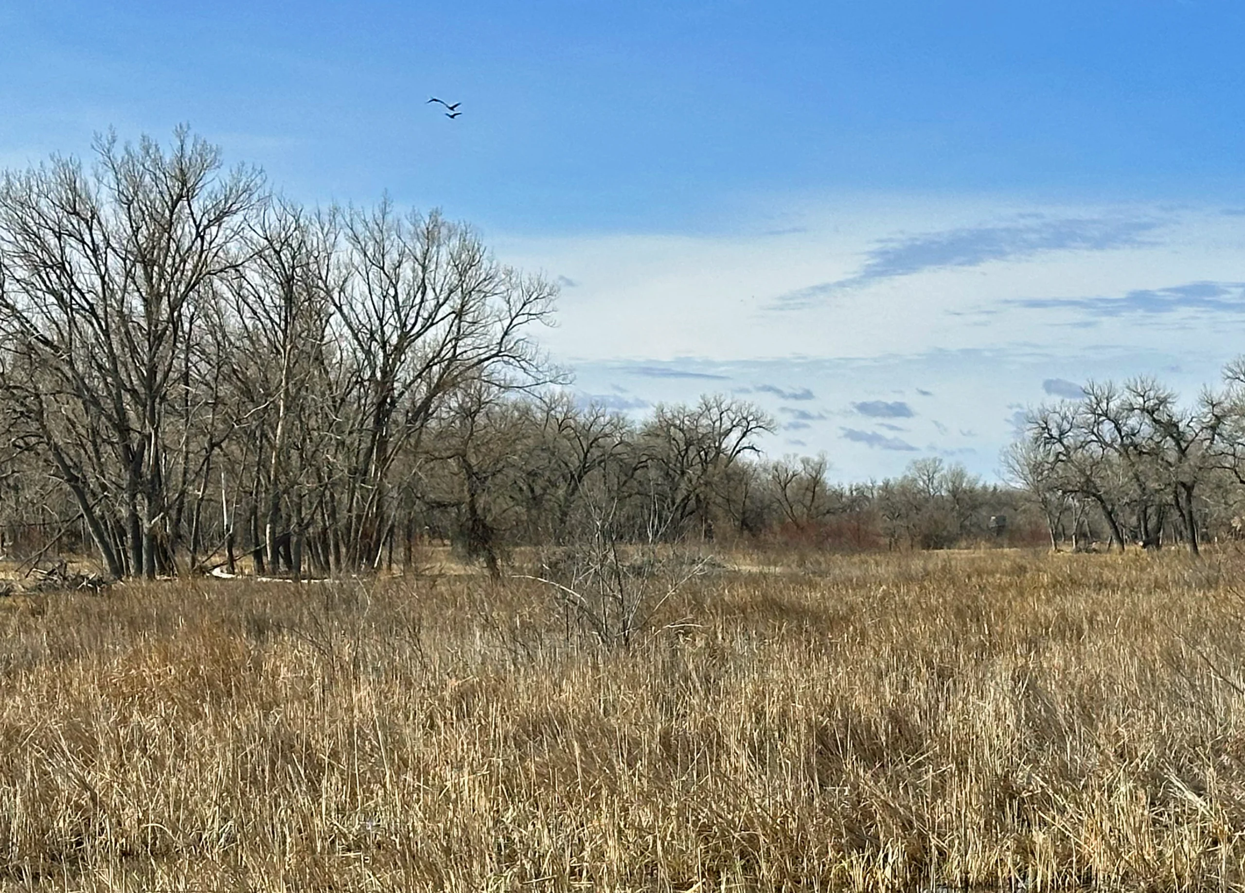A separating characteristic of this property is the scale and breadth of its water features. Unlike many riverine lands, where the โwarm-water sloughsโ are narrow or channelized, Big Slough presents expansive, naturally functioning wetlands that spread into surrounding meadow systemsโcreating both visual appeal and highly effective waterfowl habitat, a magnet for foraging puddle ducks and geese.