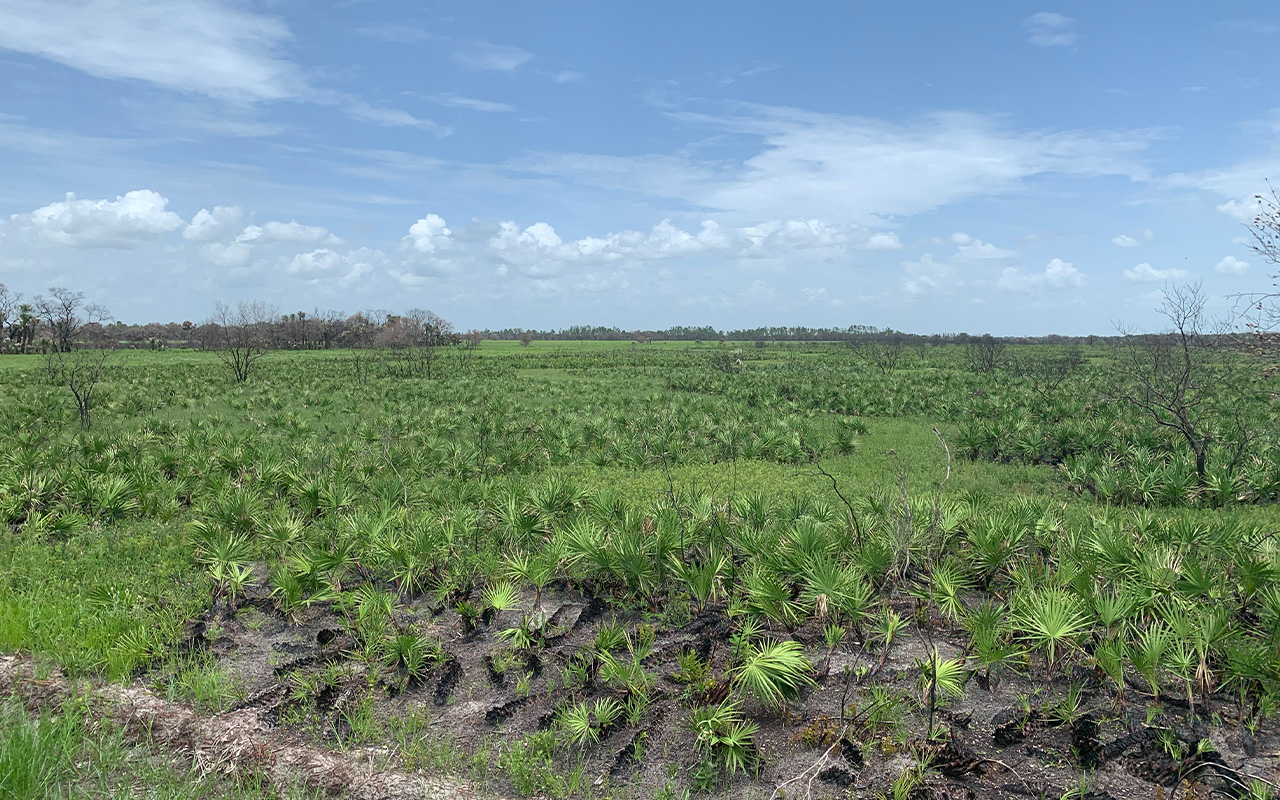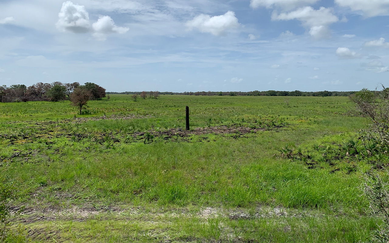 Bright Hour Ranch is an undisturbed piece of native Florida landscape with palmetto prairie, pristine wetland ponds and oak hammocks. ย Wildlife thrives in this natural Old-Florida landscape.ย The ranch was originally a 43,000 acre wild quail plantation in Arcadia owned by Calvin Houghland and was widely known as one the very best quail and turkey hunting ranches in Florida.ย A conservation easement was placed on 28,000 acres in 1998 by Mr. Houghland to protect critical parts of this exceptional ecosystem, particularly Tiger Bay Slough.ย This was one of the earliest private conservation easements in central Florida and much of this ecosystem still supports an incredible population of native wildlife.ย Due to recent habitat restoration, the bobwhite quail are now starting to recover as well.ย The future is bright at Bright Hour.