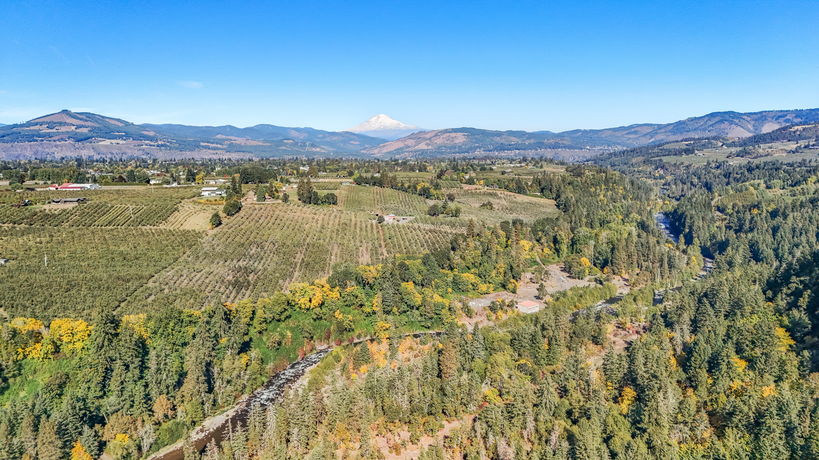 Beyond the vibrant energy of downtown Hood River lies Copper Dam Ranch, a 86.65-acre, three-generation legacy orchard estate set amid the fertile valley slopes of the Columbia River Gorge. With over 60 acres of producing pear orchard and panoramic double mountain views stretching from Mount Adams to Mount Hood, this exceptional family compound embodies the art of end-of-the-road rural living along the banks of the Hood River without compromise. Ideally positioned for privacy, yet ten minutes from town and five minutes from the Hood River Airport and Hood Aero FBO, Copper Dam Ranch offers a timeless connection to the land and to the active lifestyle that defines the Pacific Northwest.