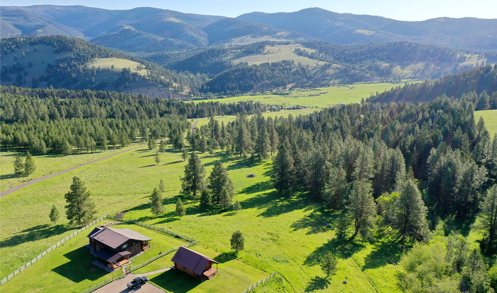 At the beginning of this valley, you will find Cozy Lane Retreat. Remotely situated off the valley floor with views across the valley. As you drive up the paved drive the first thing you notice is a forest that has been selectively logged, manicured to create a healthy ecology to reduce fire concerns. Selectively logging grows larger healthier trees and allow new grass to thrive for cattle and wildlife. Cozy Lane is centered within easy reach to services. Both Missoula and Helena provide International Airport service: