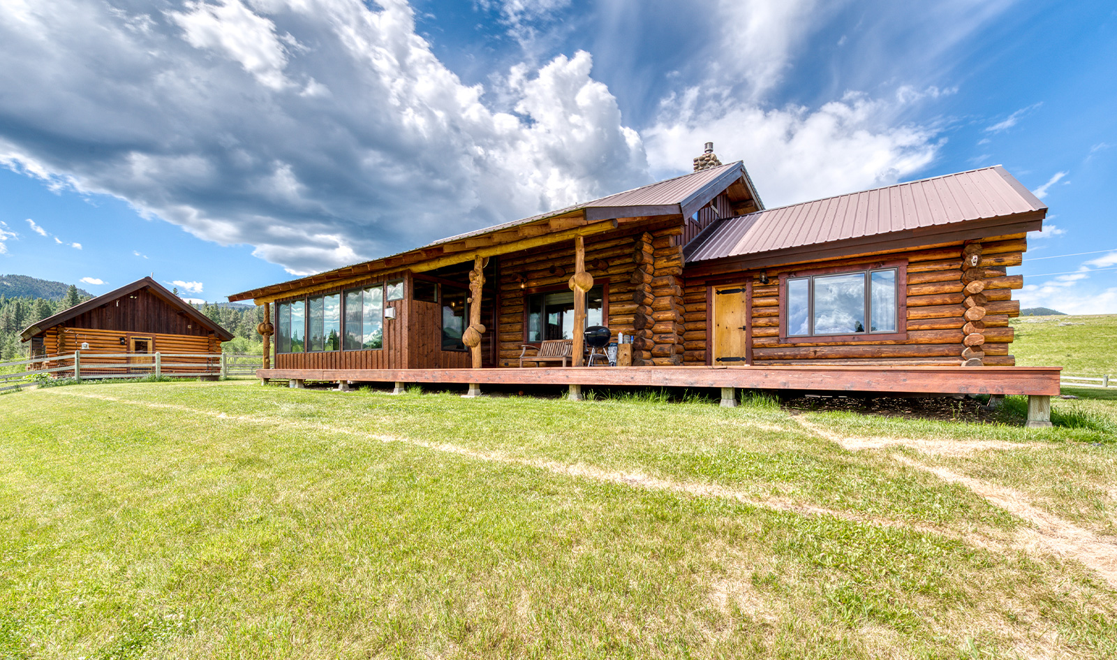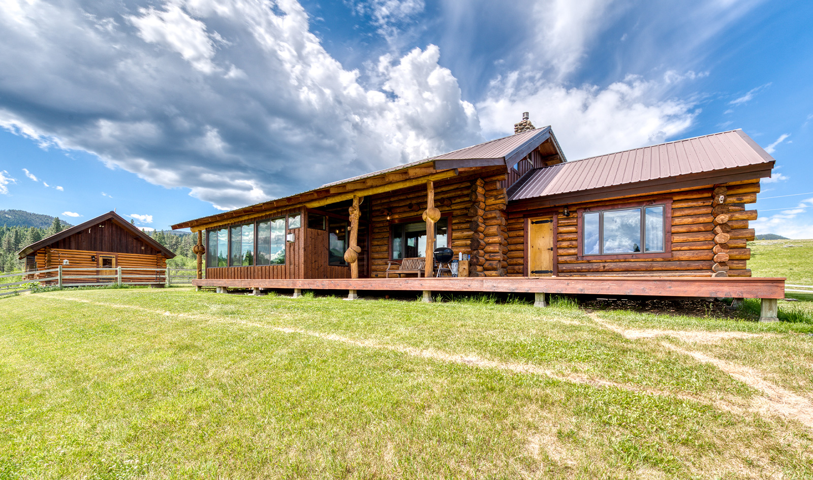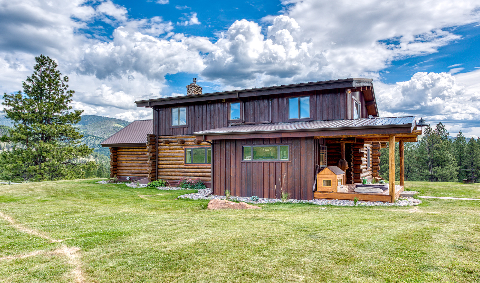 The 168-acre property was purchased by the sellers back in 2017 and completely remodeled to display a structure often referred to as Montana or mountain elegant. Beautiful hand-hewn logs, oiled and chinked with no signs of deferred maintenance create a rustic exterior.
