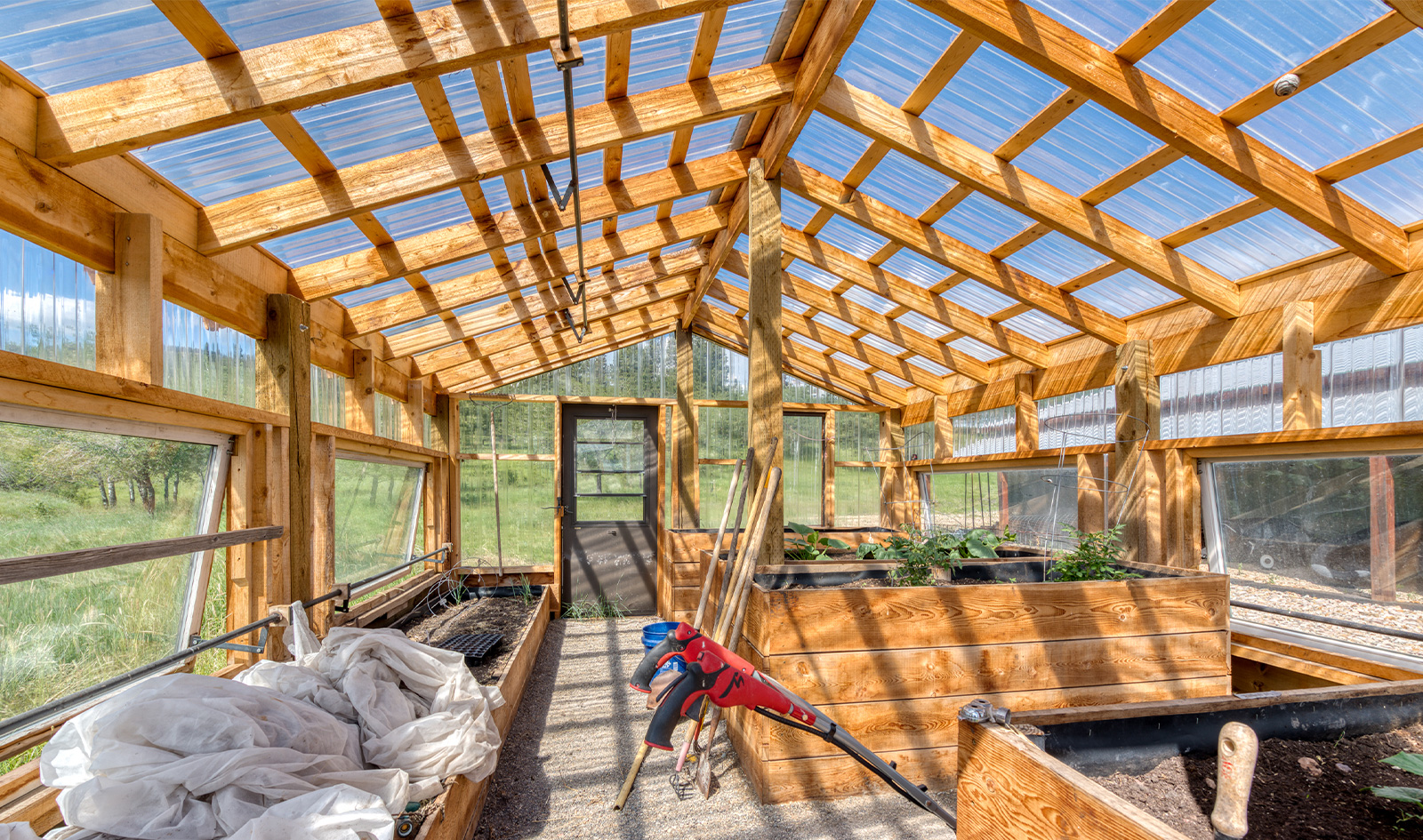 - Fenced greenhouse/garden