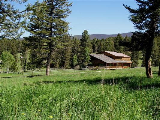The residence was built in 1992 with massive 18โฒ to 26โฒ Tamarack logs. The home is 2,688 +/- sqft and includes three bedrooms, three baths, a large kitchen, dining area, living room, recreation/family room, office and storage space. The creek is located near the western side of the house, and the trout pond is west of the creek. Power and telephone lines run to the house and domestic water is from a well. The bulk of the outbuildings are located about a half mile south of the log home, on a bench near the ranchโs entrance. Included is an open-sided hay barn that can store an estimated 700 tons, a 154โฒ x 40โฒ metal building with concrete floor, an attached 10โฒ x 60โฒ lean-to and a 40โฒ x 54โฒ attached metal building.