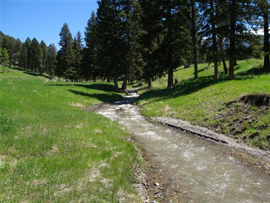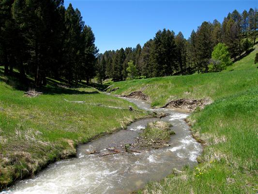 The Gurnett Creek Ranch comprises approximately 820 contiguous deeded acres in an end-of-the-road setting, and the northeast corner of the property abuts the Helena National Forest. The property consists of fir and pine timbered hillsides and ridges, aspen-filled draws and large grass hay meadows and pasture. It was selectively logged in places, which has resulted in more grass for wildlife. For several years leading up to 2005, the property was operated as a commercial elk ranch โ with a high perimeter fence and limited fee hunting.