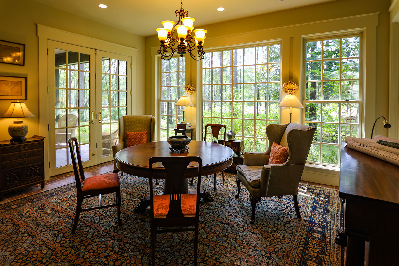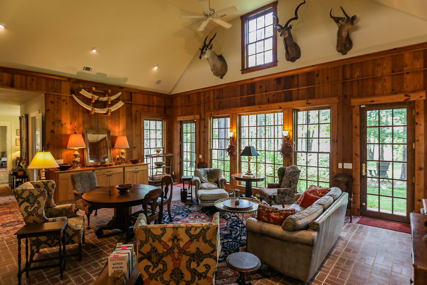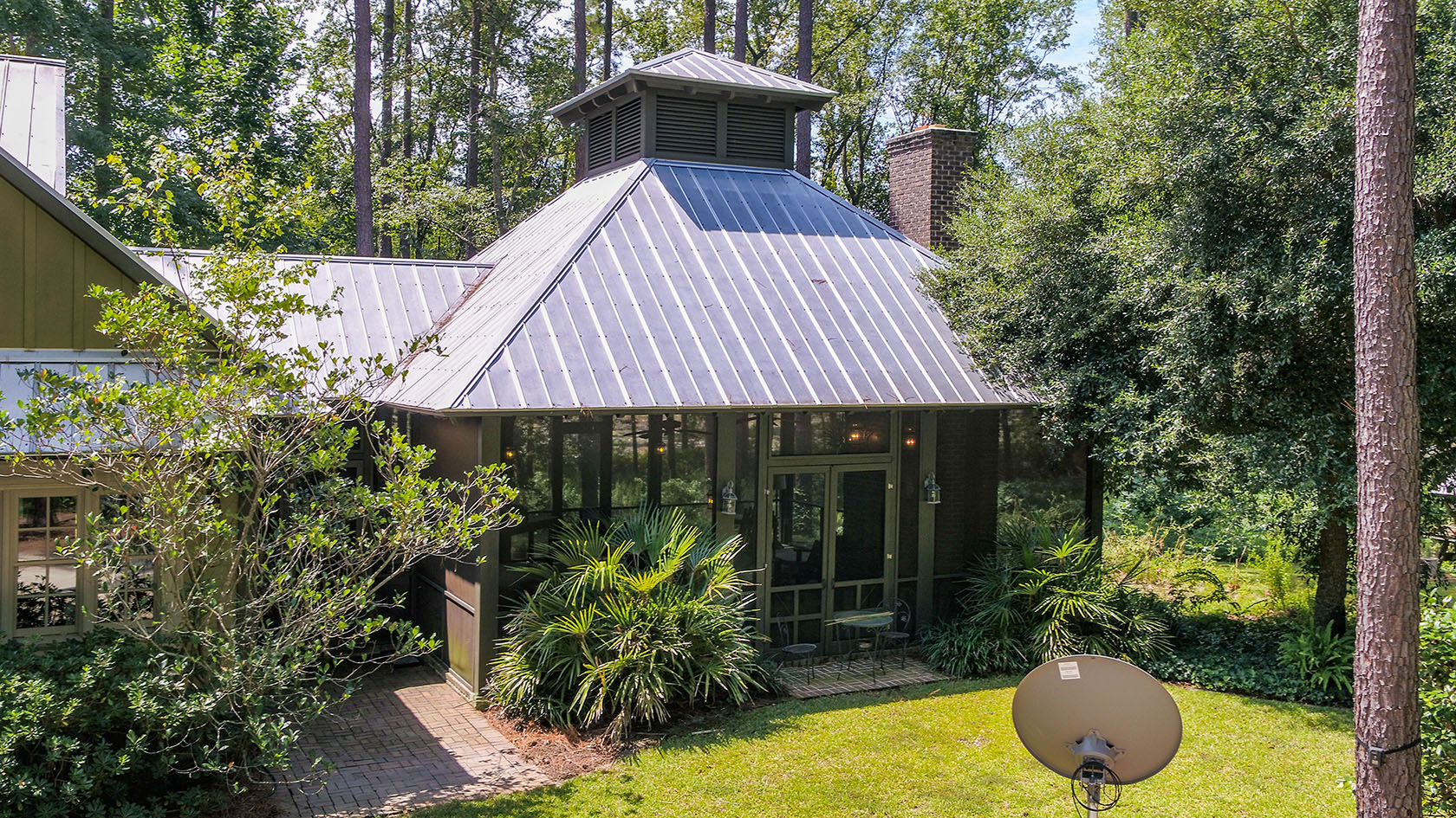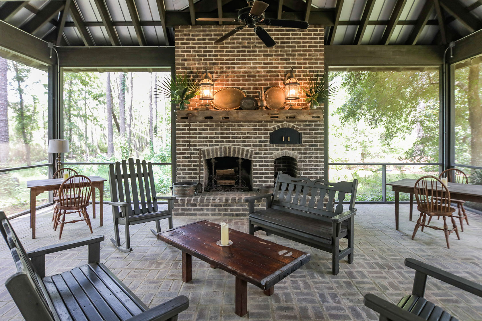 Overlooking the pond is a spectacular 4,365 square foot home with 5 bedrooms, spacious living areas and a gourmet chef’s kitchen with top of the line appliances. Custom built in 2009, much of the house is paneled and trimmed with the rich patina of local heart pine. Attached to the house is a just under 1000 square foot screened pavilion with a large brick fireplace providing enjoyment of the outdoors year-round. The surrounding grounds were meticulously designed by a master naturalist to attract native migrating songbirds and wildlife.