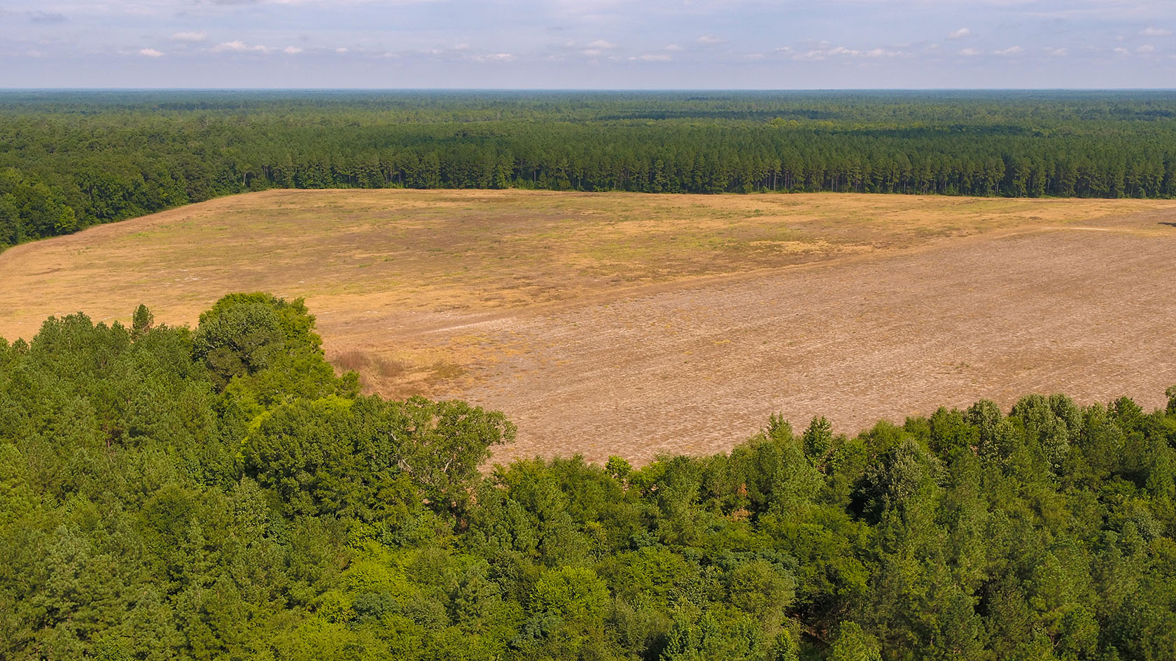 With 170 +/- acres of merchantable timber, the property provides ongoing timber revenues combined with turnkey recreational opportunities for deer, duck, dove, turkey, and wild hogs. The timberland is made up of a combination of upland pine forests with some hardwood drainages that meander through the tract. The soils here are excellent for forestry and wildlife management. The property also includes a 93-acre field excellent for crop production that has also been a famously successful dove field. Also on this property is a 26-acre pond, established food plots for deer and turkey, an extensive road system, paved road frontage and much of the property is well stocked with mature pine timber.