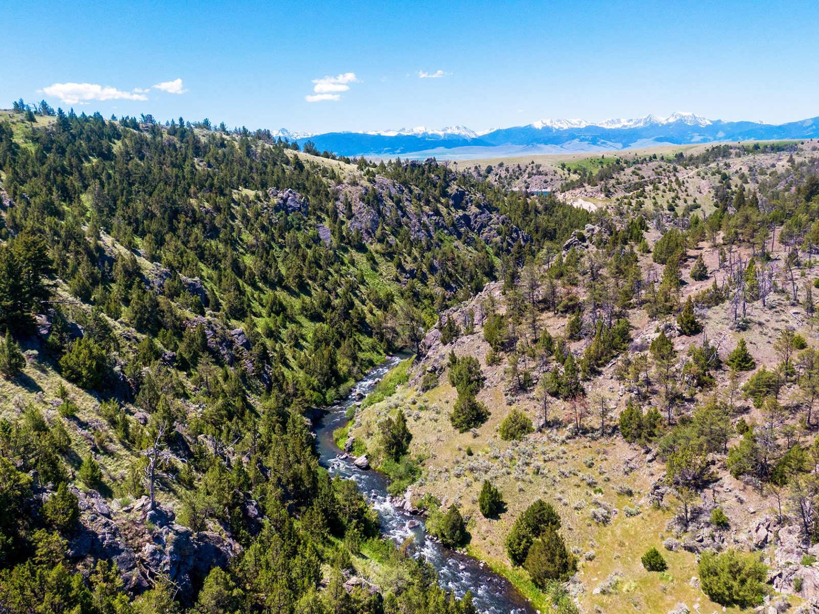 Southwest Montana, and particularly the Gallatin Valley, is considered by many to be one of the most desirable addresses in the Treasure State. This region is characterized by varying geography; productive irrigated river valleys, timbered foothill and bench country, large expanses of rolling farm ground and rangeland, and high-alpine mountainous terrain. The area is touted for its premier recreational opportunities, cultural variety, historical richness, and distinctive western โfeelโ. Situated on the northern fringe of the greater Yellowstone Ecosystem and about 70 miles north of Yellowstone National Park, the Gallatin Valley is framed by several prominent mountain ranges; the Bridger Mountains to the east, the Gallatin and Madison Ranges to the south, and the Tobacco Root Range to the west, with the snow-capped summits of some peaks exceeding 10,000 feet in elevation. Numerous cottonwood-lined rivers, freestone streams and spring creeks bisect the valley floor, the majority of which originate from the high, forested slopes of the surrounding mountains. Populations of elk, deer, and moose are frequently seen in the foothills and hayfields around the perimeter of the valley, and the grizzly bear can still be found roaming the forests and peaks of the Gallatin and Madison Ranges.