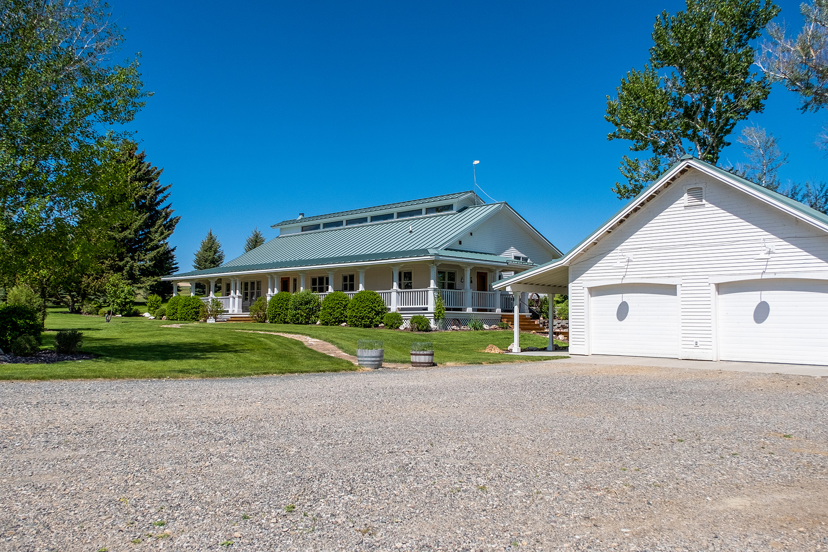 The 1992 custom-built main residence has 2,160 SF of living space on 1 level with 3 bedrooms and 2 baths. The house has wood siding, metal roof, and central gas heating – hot water/radiant floors. The guest house was built in 1991 with wood siding, metal roof, and has 1 bedroom and 1 bath. Total living area on one level is 704 SF. The house has central gas heating – hot water/radiant floors.
