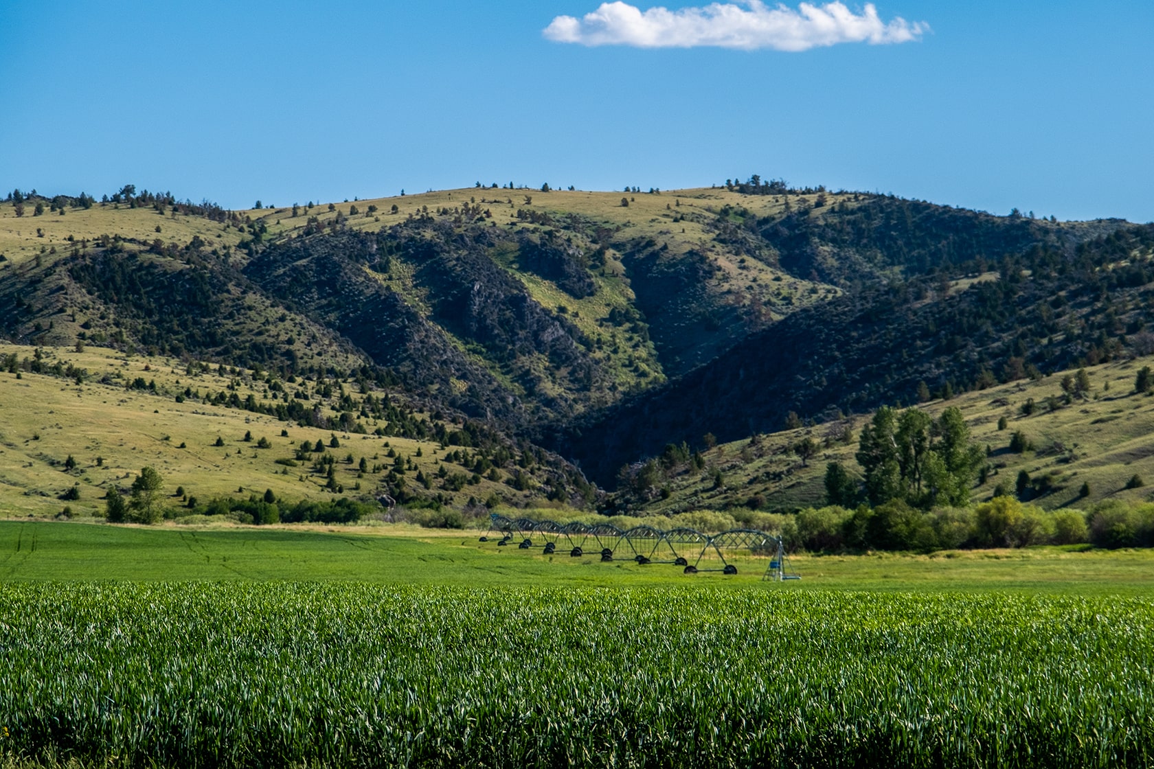The irrigated portion of the ranch is currently being served by two pivots via water rights in the form of both decreed and water association shares sourced from Willow Creek and Harrison Lake. The ranch controls 10 decreed irrigation and stock water rights dating in priority from 1865 to 1920. The irrigation water contract shares owned by the ranch total 300 ac ft/year. The primary crop being grown in 2021 on both the dryland and irrigated cropland is spring wheat.