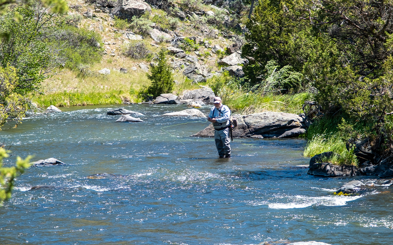 Montanaโs trout streams are legendary in quality and scale, and the state arguably contains more premier water than could probably ever be fished in a lifetime. Seven rivers in Montana have the distinction of being considered the very best; designated โBlue Ribbonโ status, and five of these – the Yellowstone, Gallatin, Madison, Missouri and Big Hole, are all within a 1.5-hour drive or less from the ranch. Other great fisheries in the general area include the Jefferson, Ruby, Beaverhead, Boulder, and Shields Rivers, as well as the enormous diversity of Yellowstone National Park waters. The world-class OโHair and Depuy sections of Armstrong Spring Creek, and also Nelsonโs Spring Creek, are a little over an hour drive of the ranch. Additionally, a number of high-mountain lakes and small stream fisheries are located nearby, as are several valley lakes and reservoirs that offer excellent stillwater fishing opportunities for trout.
