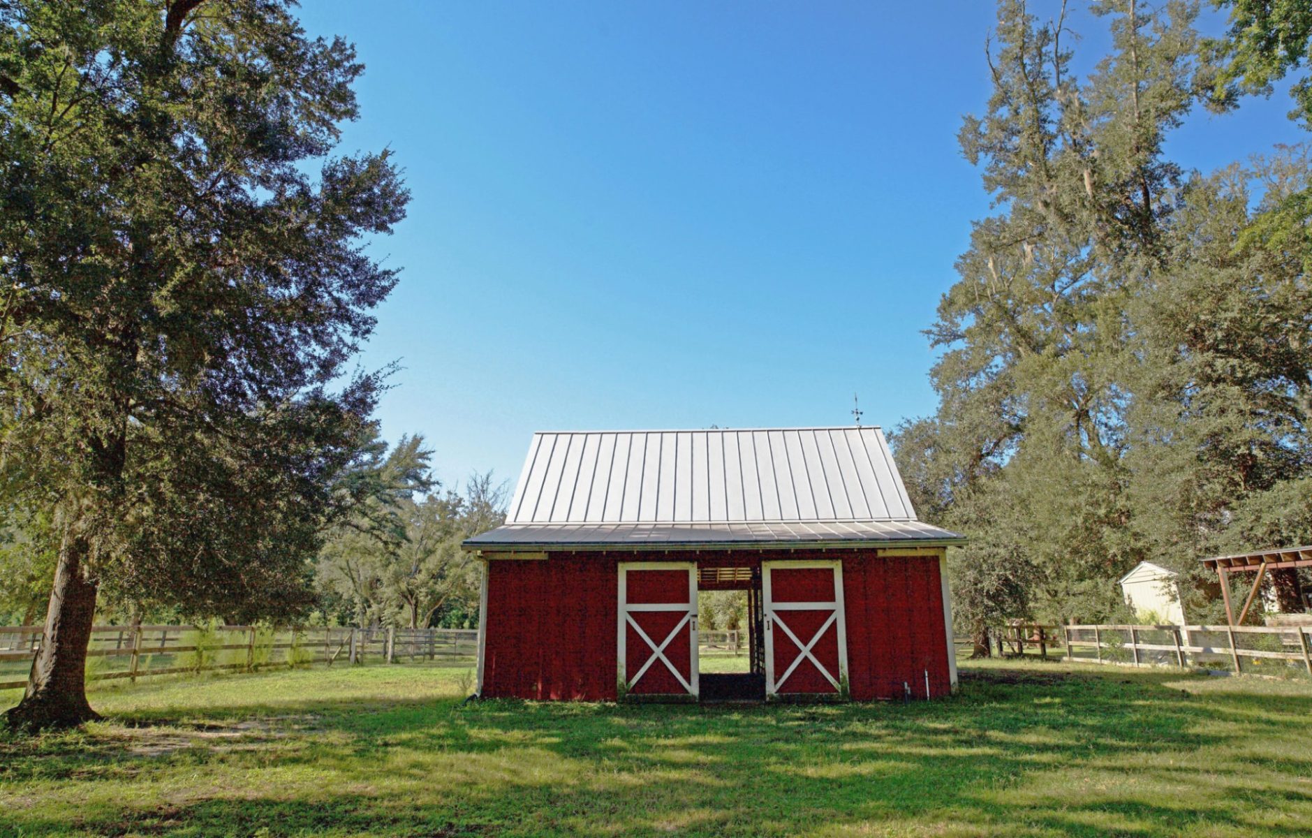Tucked in the private hamlet known as Pinckney Colony, minutes from Hilton Head Island and the historic town of Bluffton, South Carolina is a remarkable 13-acre equestrian estate known as Hawkeye Farm. Hawkeye Farm is completely fenced with paddocks, each with a turn-out shed, and it has a four-stall stable with two tack rooms and a center aisle.