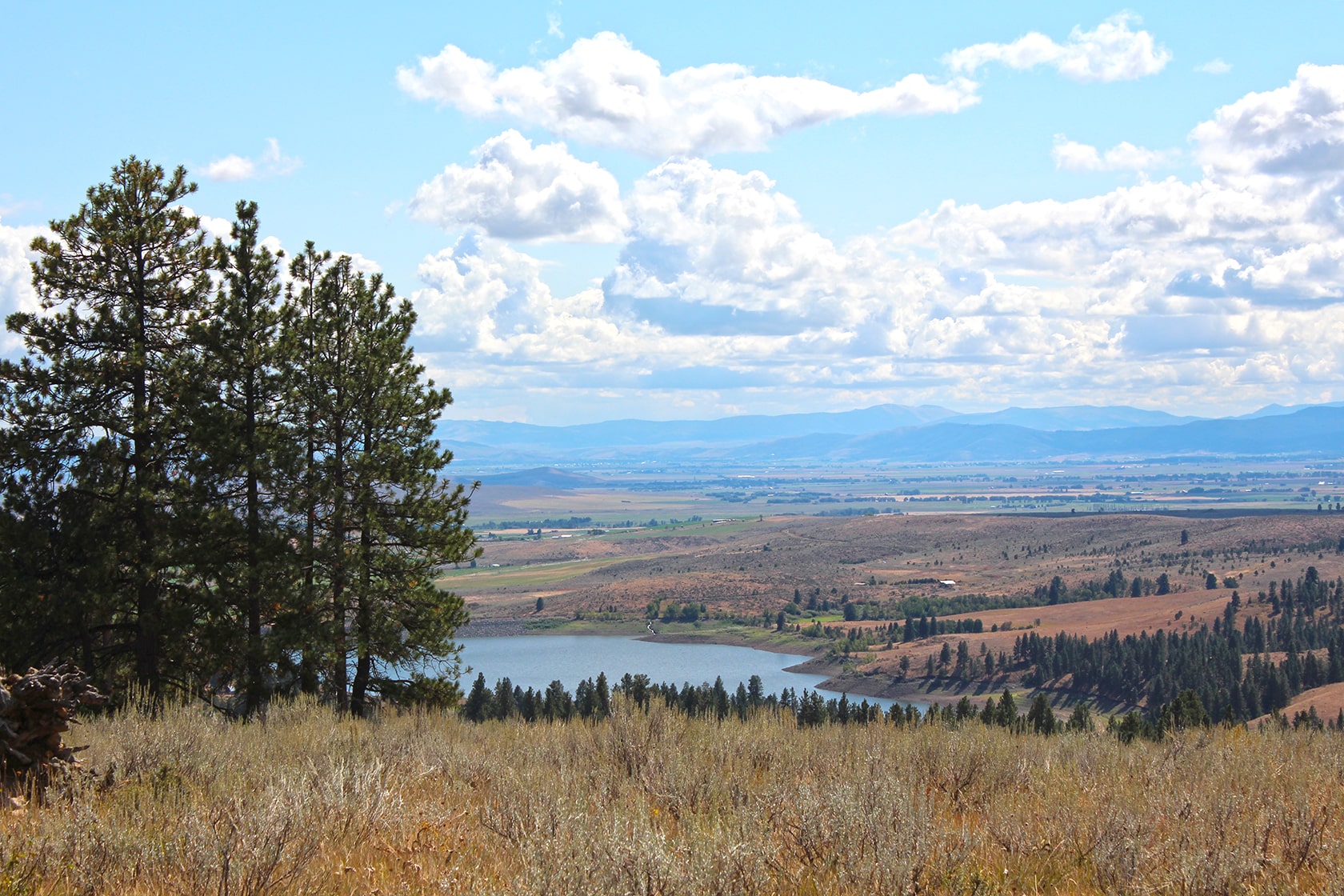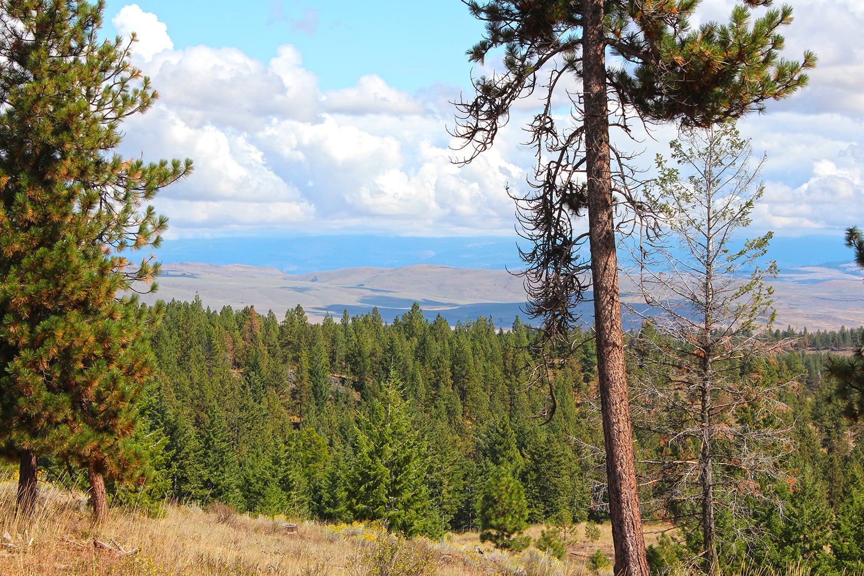 Bud and Louise Morgan owned and ran Hidden Valley Horse Ranch as a dude ranch in the 1950s.ย At the time the property was 700 acres.ย The property now has 1,774.2 acres of timber and grazing land cascading from where Elkhorn Mountains meet the Blue Mountains.ย Whitman National Forest borders it to the Northwest, Wolf Creek and Clear Creek run through the entirety of the property down to Wolf Creek Reservoir.ย The property borders almost a half mile of Wolf Creek Reservoir.ย To the South and Southeast are alfalfa fields and the Elkhorn Wildlife Refuge, an area dedicated to protecting wintering deer and elk.ย There are remnants of the dude ranch with the original house and barn remain, but the stability remains to be determined.ย The property is accessed from a county road which is maintained all year.ย There is one easement on the property that allows access to Wolf Creek Ranch 62924 Wolf Creek Lane.
