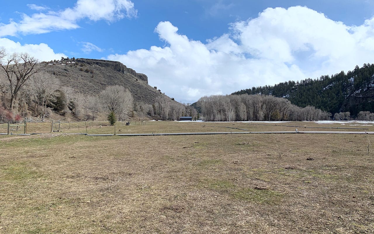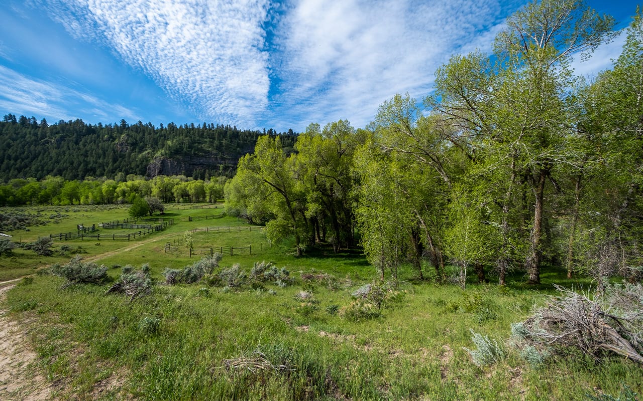 This property consists of two non-contiguous tracts of land connected with a permitted right-of-way through national forest lands and BLM lands.ย There is an annual permit fee of $175.ย The river bottom parcel consists of 70 acres and the hillside grazing ground consists of 80 acres.