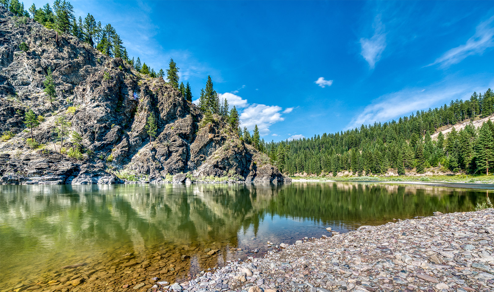 The Montana River Lodge is located at the tail end of the Albeton Gorge, along one of Montanaโs longest rivers, the Clark Fork, which stretches nearly 300 miles from its headwaters near Butte, all the way to the Idaho border. The section of river near the lodge holds feisty rainbows that are some of the hardest fighting in the state, and native Westslope Cutthroats that are generally eager to rise for the dry fly.