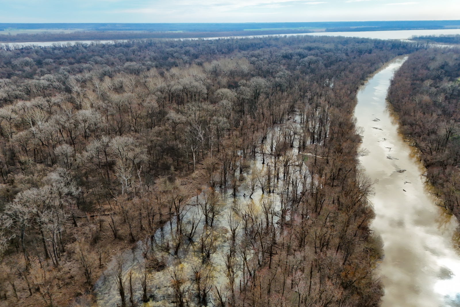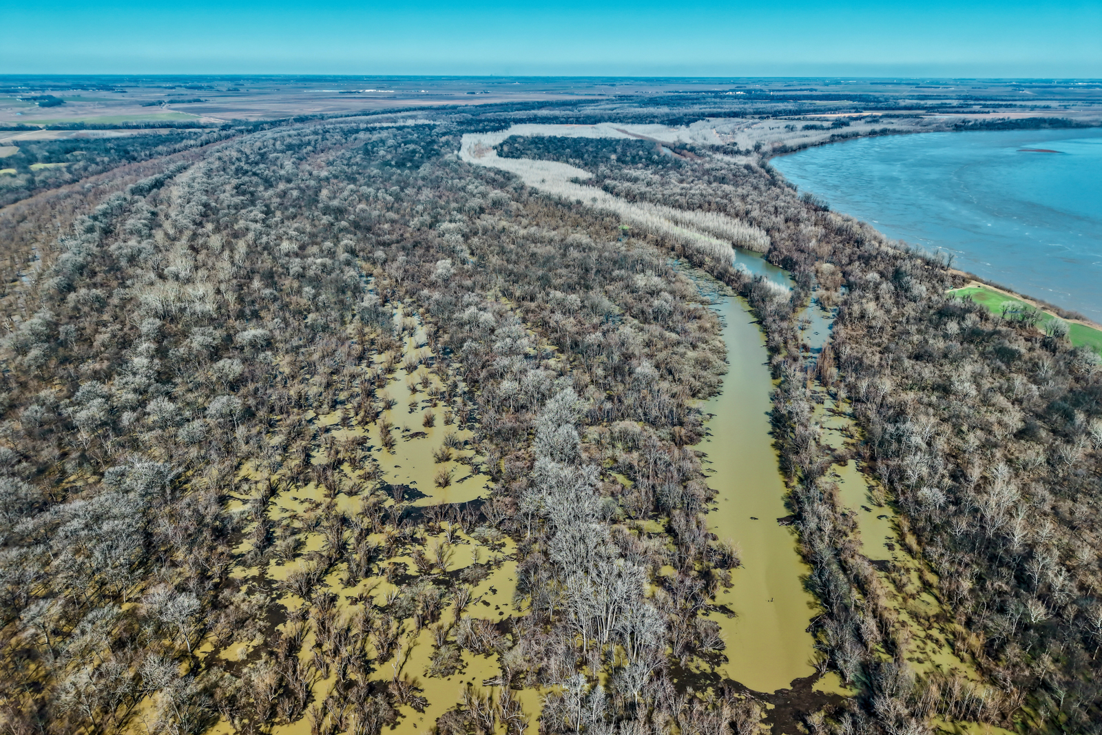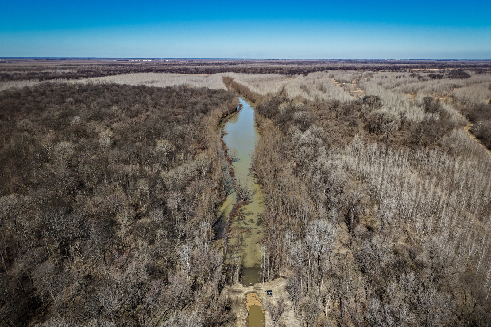 Pecan Point, also known as Island 35, is land for sale in Arkansas that features an expansive, remote, scenic, and wild sporting property encompassing over 6,000 acres, spanning both Arkansas and Tennessee. The land is inside the Mississippi River levee, 20 miles upriver from Memphis and 35 miles south of the Missouri line, as the crow flies. This region is known as the Mississippi Alluvial Plain, commonly referred to as the Delta, marked by its fertile farmland, distinct culture, and rich wildlife resources. The property features a bottomland hardwood forest with towering mature trees distributed across the acreage, alongside new-growth timberland. The woodland terrain is a mix of rolling elevation giving way to low-lying flats, punctuated by river-fed lakes and sloughs, wildlife food plots, and a sound road system. Pecan Point also features improved tillable cropland and various sites for building improvements. Since 2015, the land has been stewarded in accordance with professional wildlife management and conservation protocols, while also offering balanced, fair-chase hunting opportunities. The landscape provides the hunter conservationist an unspoiled and diverse wildlife habitat for hunting, supporting an abundance of trophy whitetail deer and wild turkeys. The property sits in the Mississippi Flyway, and when conditions are right, wintering waterfowl concentrate on the propertyโs wetland habitat and flooded crop fields. The presence of prominent adjacent hunting properties, combined with nearby federal and state refuges, creates an estimated 55,900-plus acres of valuable wildlife habitat. This context elevates Pecan Point beyond its already impressive boundaries. The historic and charming village of Wilson, Arkansas is within seven miles of Pecan Pointโs private gate. Pecan Point is not only land for sale in Arkansas, but also a story of a distinct location, exceptional wildlife, and land stewardship, offering four-season opportunities and development options for those who value the hunting and outdoor lifestyle.