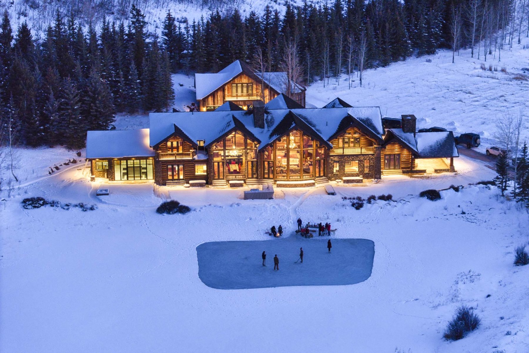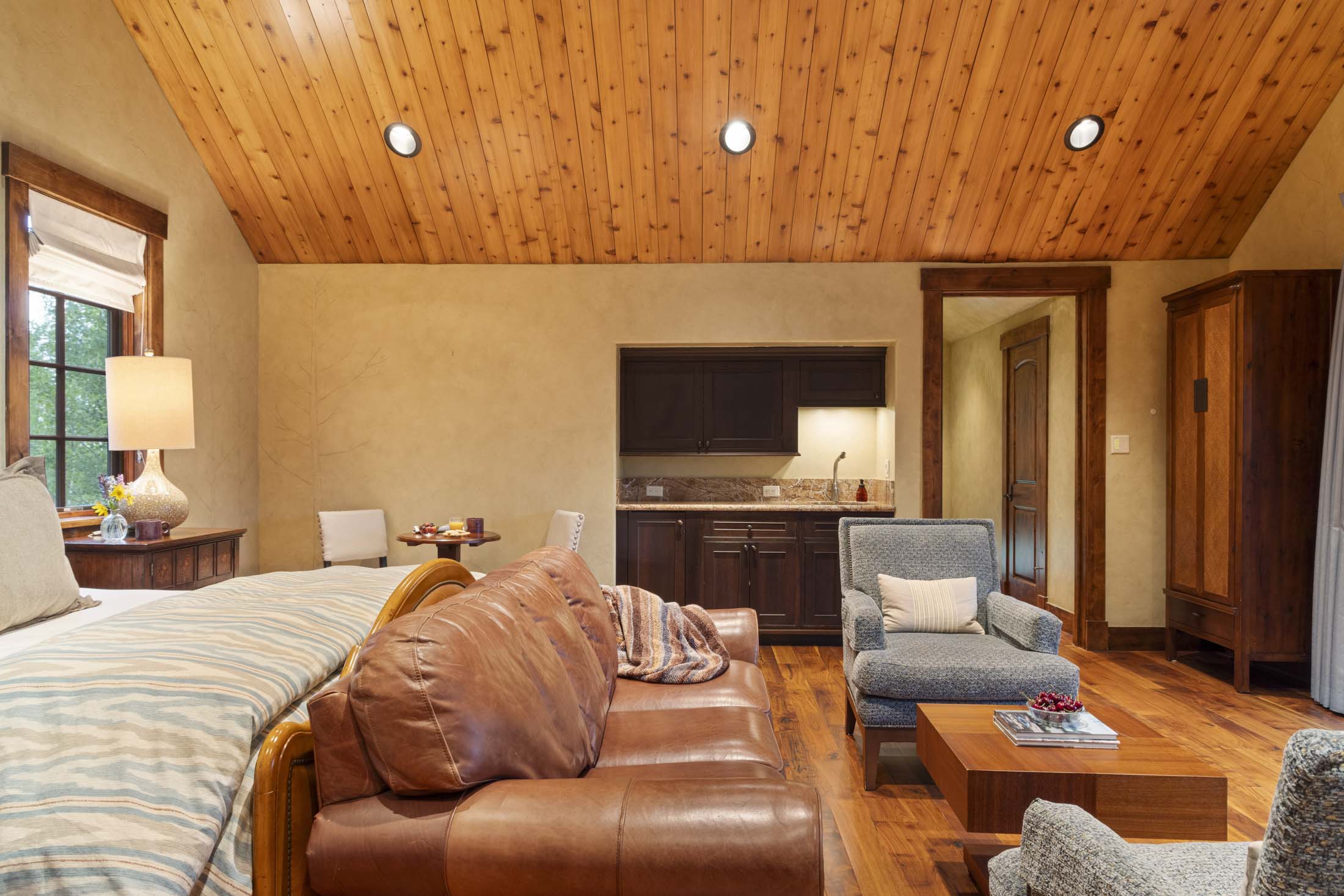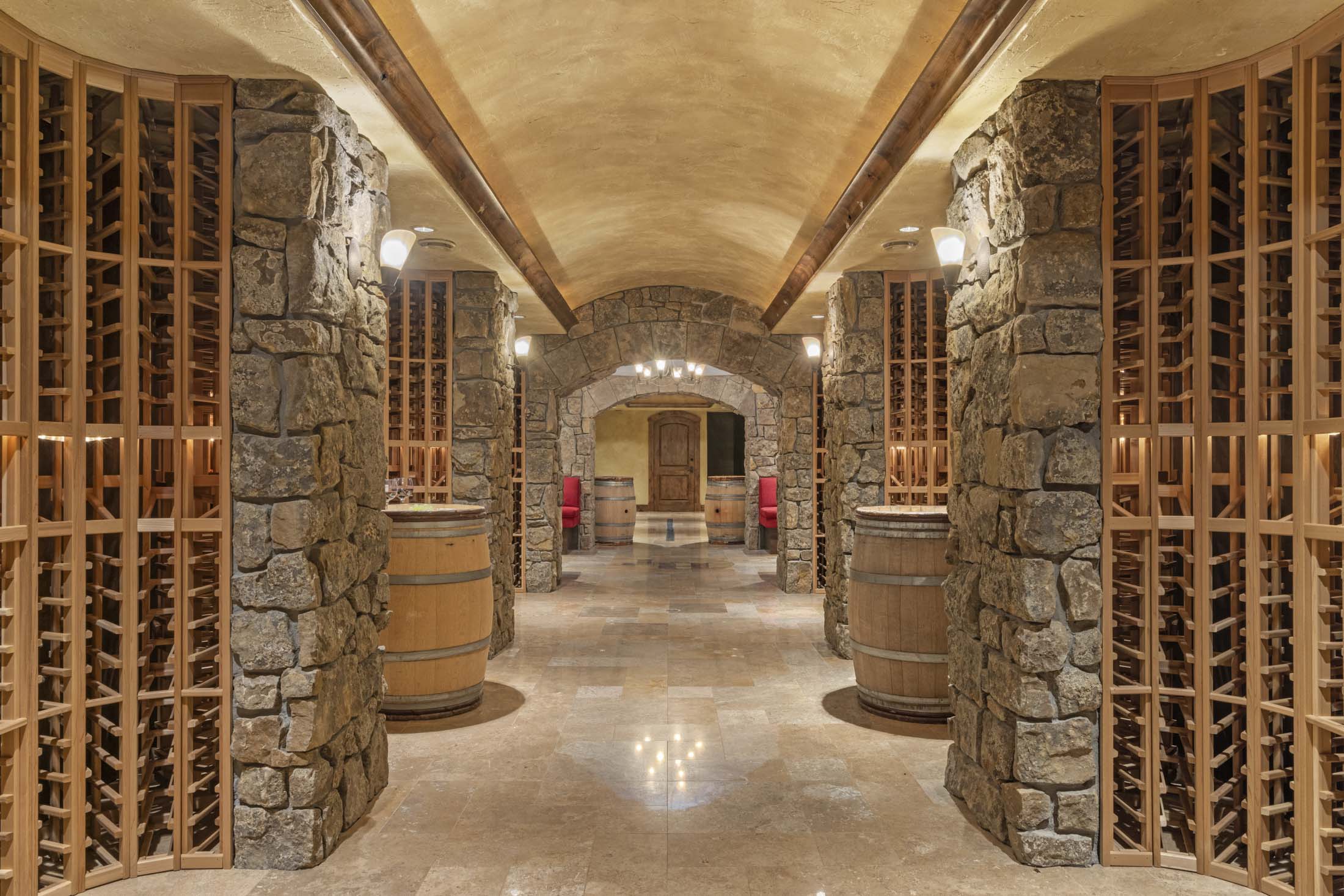 At the heart of the compound is a 12,705-square-foot main residence inspired by the great lodges of the American West. The home features an indoor pool and spa, a private theater, a fully equipped gym, a wine cellar, and five en-suite bedrooms designed for both comfort and grandeur. The 3,978-square-foot guesthouse offers four bedrooms, six fireplaces, and panoramic decks that capture every shift of Wyoming light. Completing the compound is a 1,695-square-foot garage studio connected to the main house by an underground wine cellar tunnel, offering additional living quarters, a greenhouse, and a heated three-car garage.