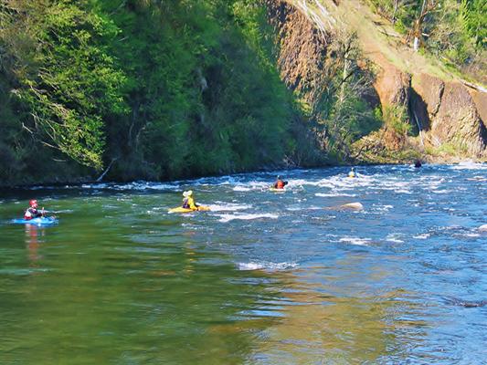 RiverSong is home to a rare riverside beach with room for dozens of sunbathers. A gentle rapid provides a fun ride into a large swimming hole. For the more adventurous, one can paddle in a kayak on excellent whitewater up or downstream from the property. A steep forested cliff on the opposite side of the river provides privacy and insurance against future development. The healthy forest and wildflower-strewn meadows are crisscrossed with miles of hiking, mountain biking and cross-country skiing trails. Camping platforms perched on the cliff edge look down through the treetops to the rushing river. Showers and restrooms in the middle of the forest facilitate family reunions and large groups. A large stage and sand dance floor offer an incoming owner the opportunity to host outdoor weddings and other entertainment.