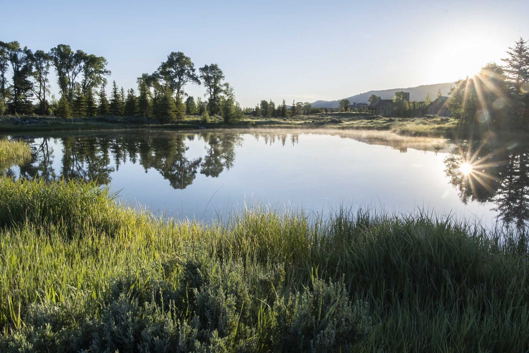 The Snake River forms the western boundary of the neighborhood, which was first developed in 1979 when a long-time Jackson Hole ranching family decided these 586 acres of sagebrush meadows and mature cottonwood and fir forest would be better building sites than pasture for their cattle. Although the county allowed more density, lots here were kept large—most, including Solitude Vista, are between 5 and 6 acres. There are only 103 lots in Solitude and, more than forty years into the neighborhood’s development, not many vacant lots remain.
