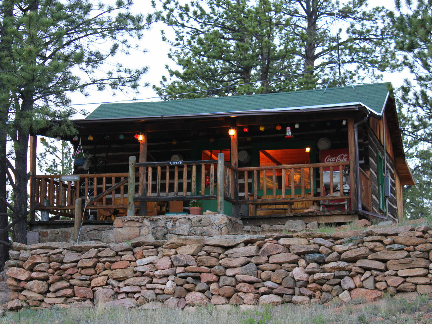 Acreage: The Tarryall River Ranch is comprised of 90.37 deeded acres with more than ยพ mile of the Tarryall River and shared boundaries with the Pike National Forest. The terrain varies from green lawns around the recreational hall, cabins, swimming pool and playground areas to a gentle slope where the main lodge, office and another guest cabin are located. Towering pines and quaking aspen are scattered throughout the property, and the backdrop is a fantastic series of giant rocky outcroppings rising up to the mountains beyond.
