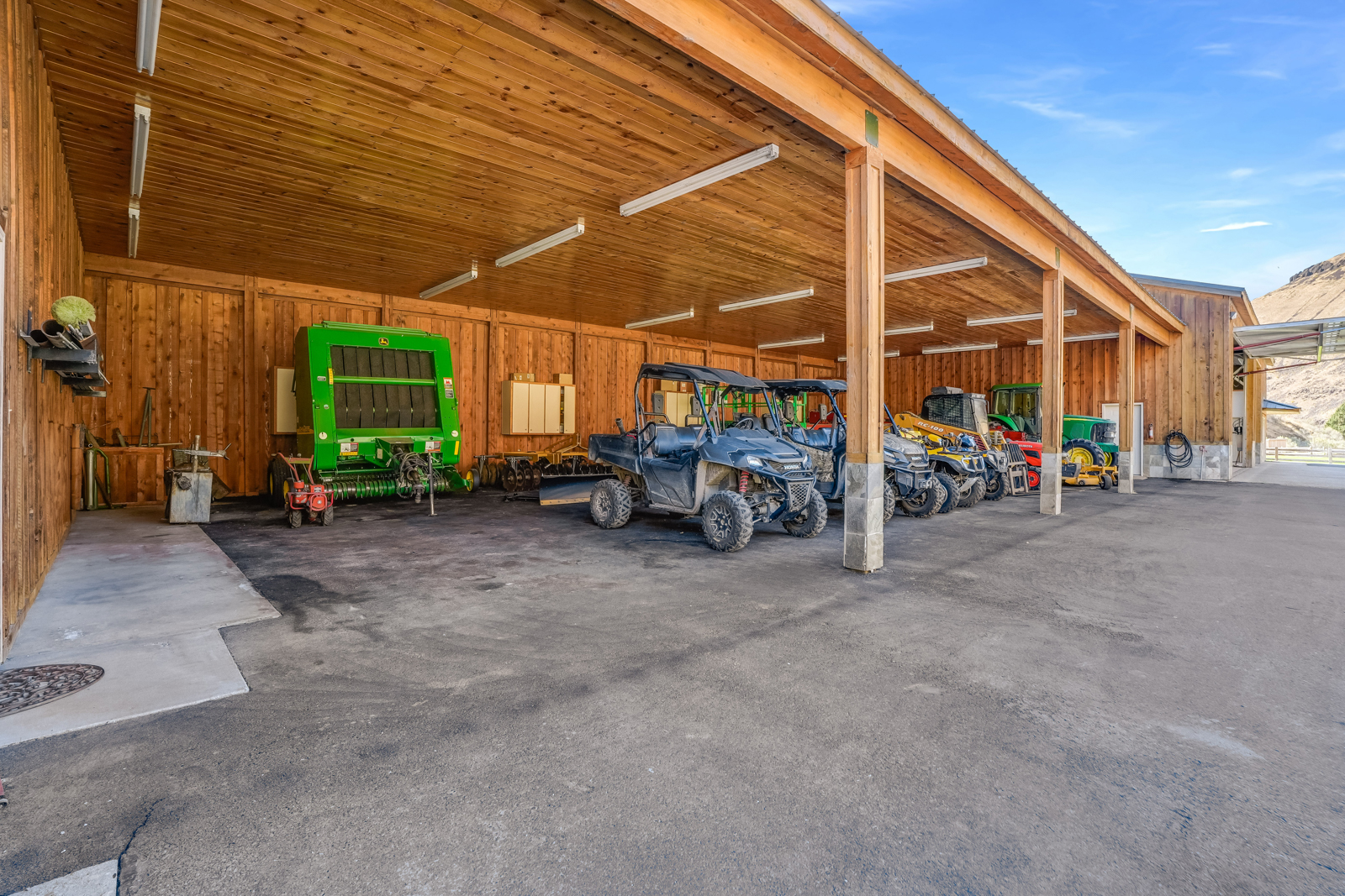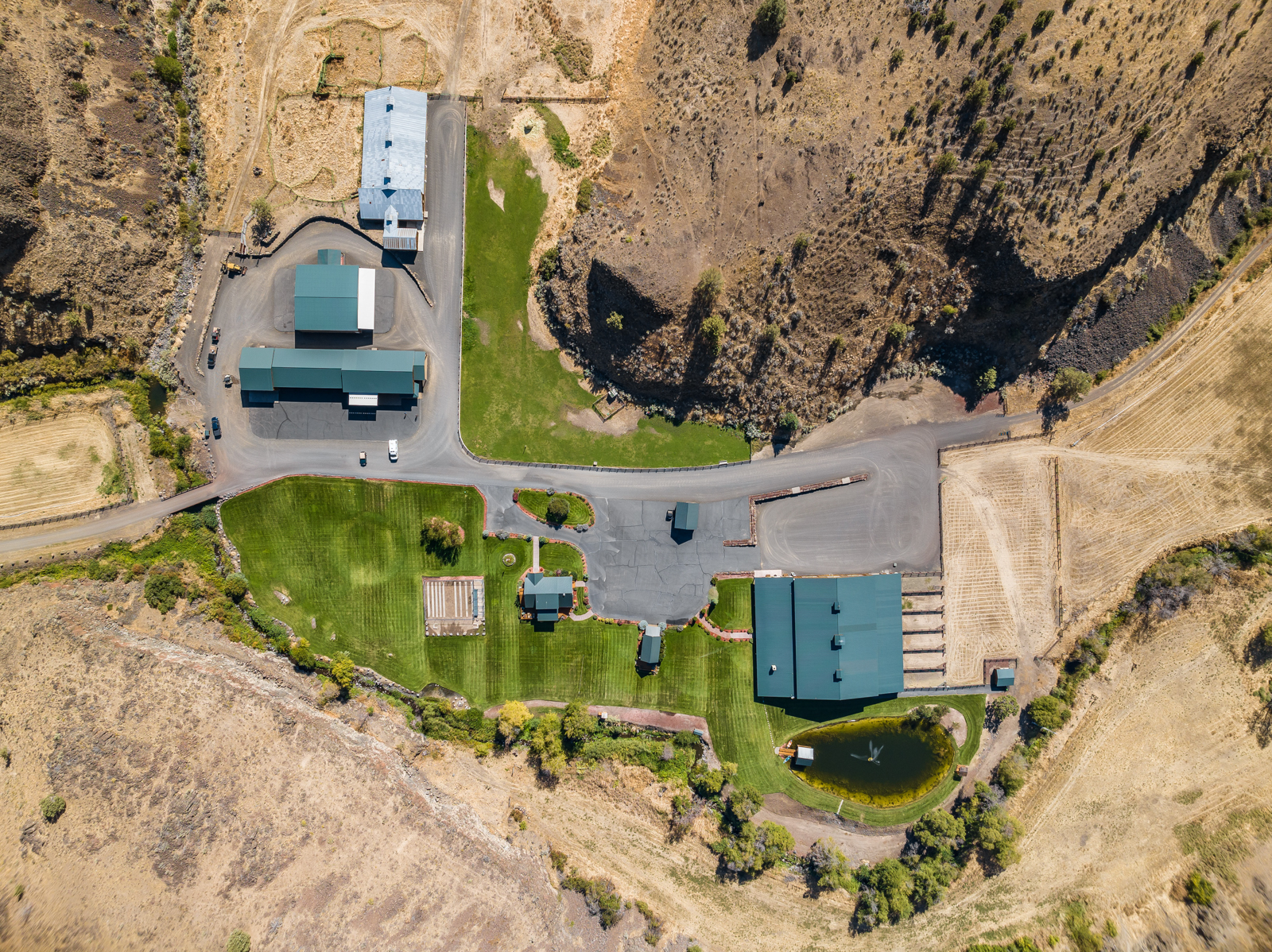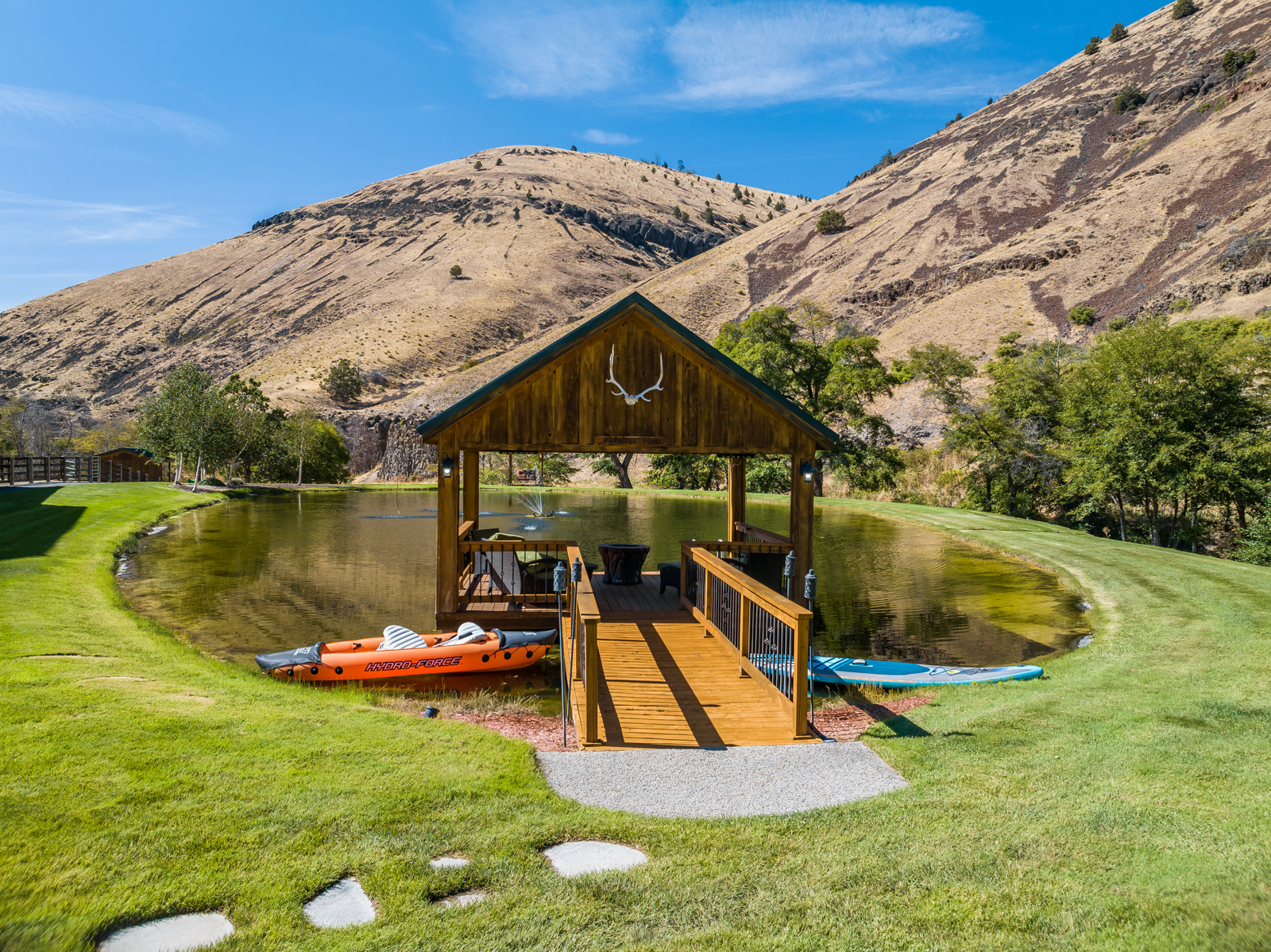 sqft of luxury horse stalls, vet room, tack room, a 3,600 sqft helicopter hangar, and over 18,000 sqft of meticulously maintained shops and barns for equipment, toys, hay, a ranch museum, various outbuildings, as well as spike camp cabins strategically located throughout the Ranch. Adjacent to the saloon and indoor arena is an oxygenated pond with a gazebo for fishing, swimming, or relaxing by the fire pit in the evening.