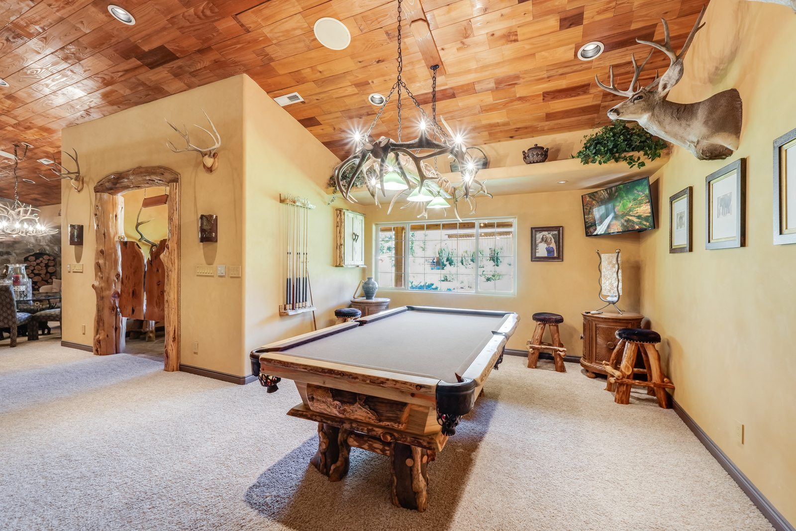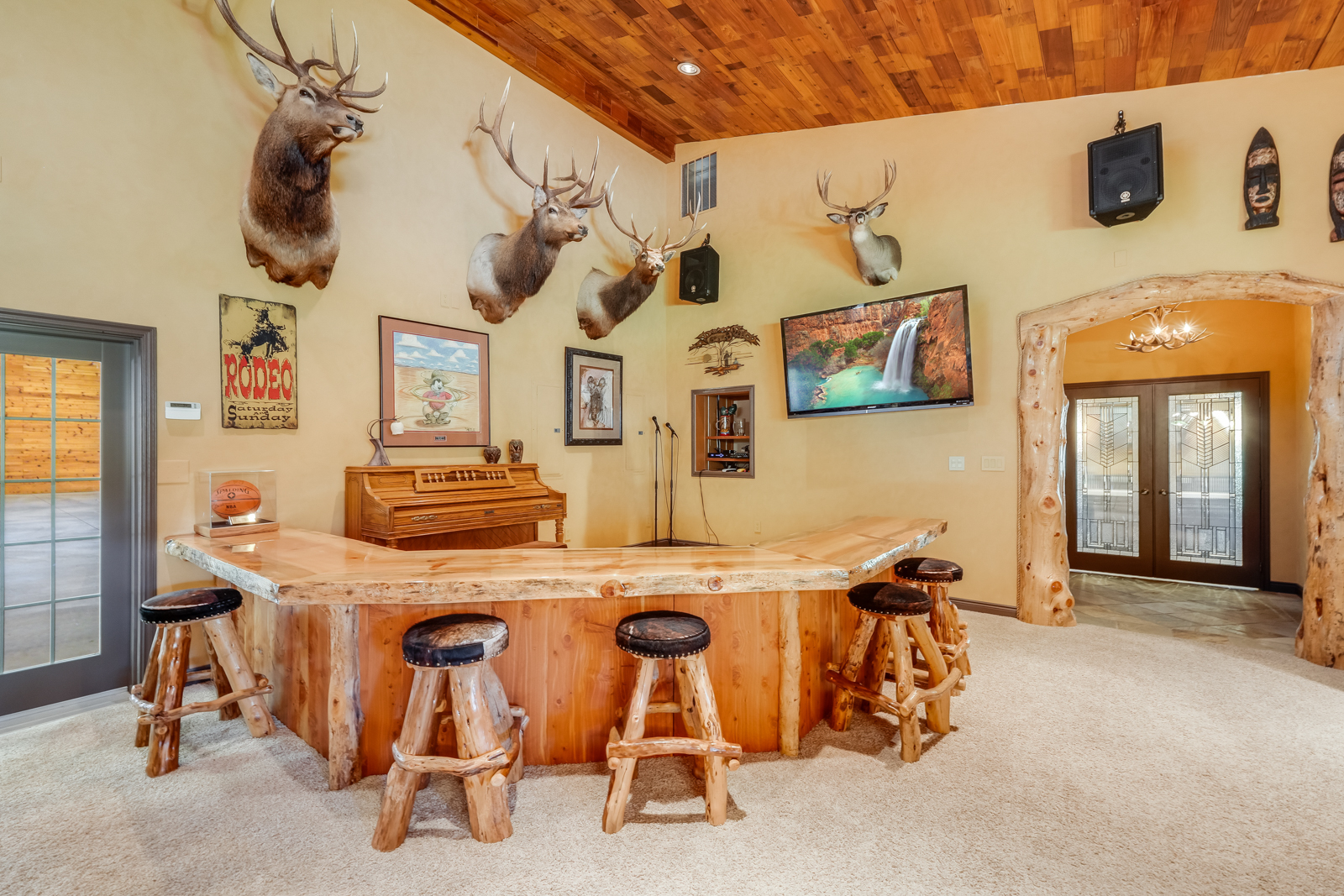 The Stanley Ranch is ideally set up for entertaining small and large groups of families and friends. Improvements include the 2,800 sqft main house, an 800 sqft bunkhouse, a 3,600 sqft saloon, theatre, walk-in meat locker and game processing room, an office, a 9,700 sqft indoor riding arena, 3,600