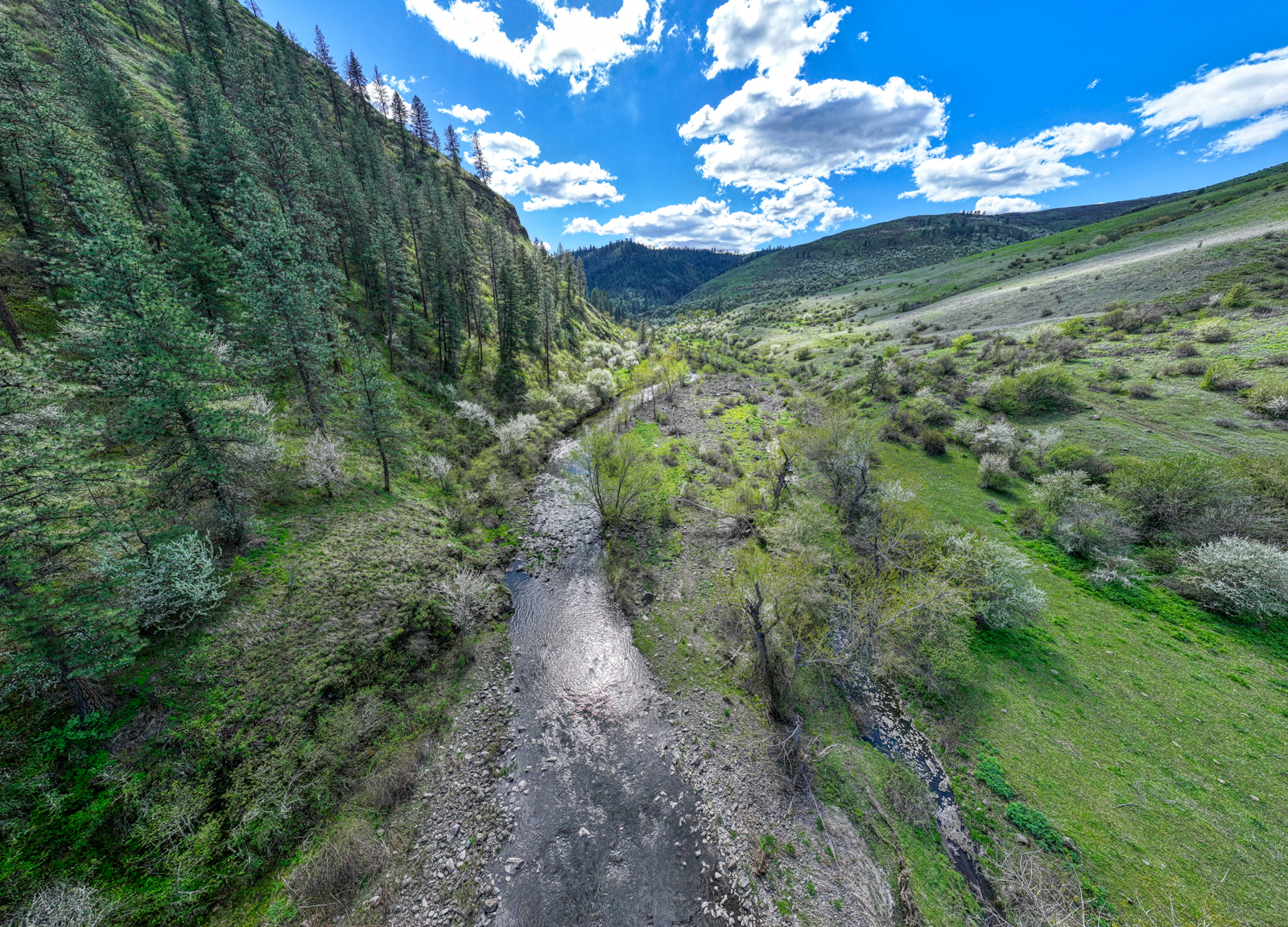 Two Canyons Ranch spans ยฑ2,015 acres, offering diverse landscapes, including deep canyons, riparian areas, live water, timbered hillsides, and ยฑ150 acres of tillable farmland. The luxurious ownerโs home overlooks the breathtaking Cottonwood Creek Canyon, while the ranch also features a large shop with a caretakerโs apartment and a stocked pond. Located just over an hour from Lewiston, ID, itโs a prime location for big game and upland bird hunting.