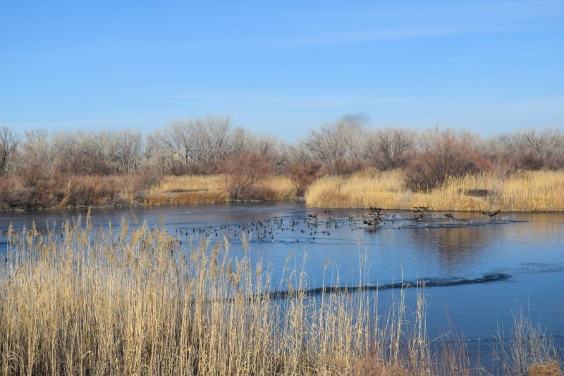 And though impressive numbers werenโt evidenced on the first visit the listing brokers took to the ranch in the early season, they certainly were upon their returns. I wasnโt hunting it, but I did sneak up to one of the Moist-Soil Food Fields for a look. These units of tremendous habitat are a result of a Ducks Unlimited project, built with the Golden Eagle as partners -three in all completed, one underway. They are basically nothing more than flooded food for the unbridled gluttony of dabbling ducks. And this was freshly flooded only days before. Consequently, when I came up over the perimeter berm and peered through the tall grass, it absolutely erupted! I estimated 3,000 ducks, mostly mallards with some pintail scattered throughout, and even a group of tiny Richardsonโs Canada geese, too… โsqueakersโ as they are.